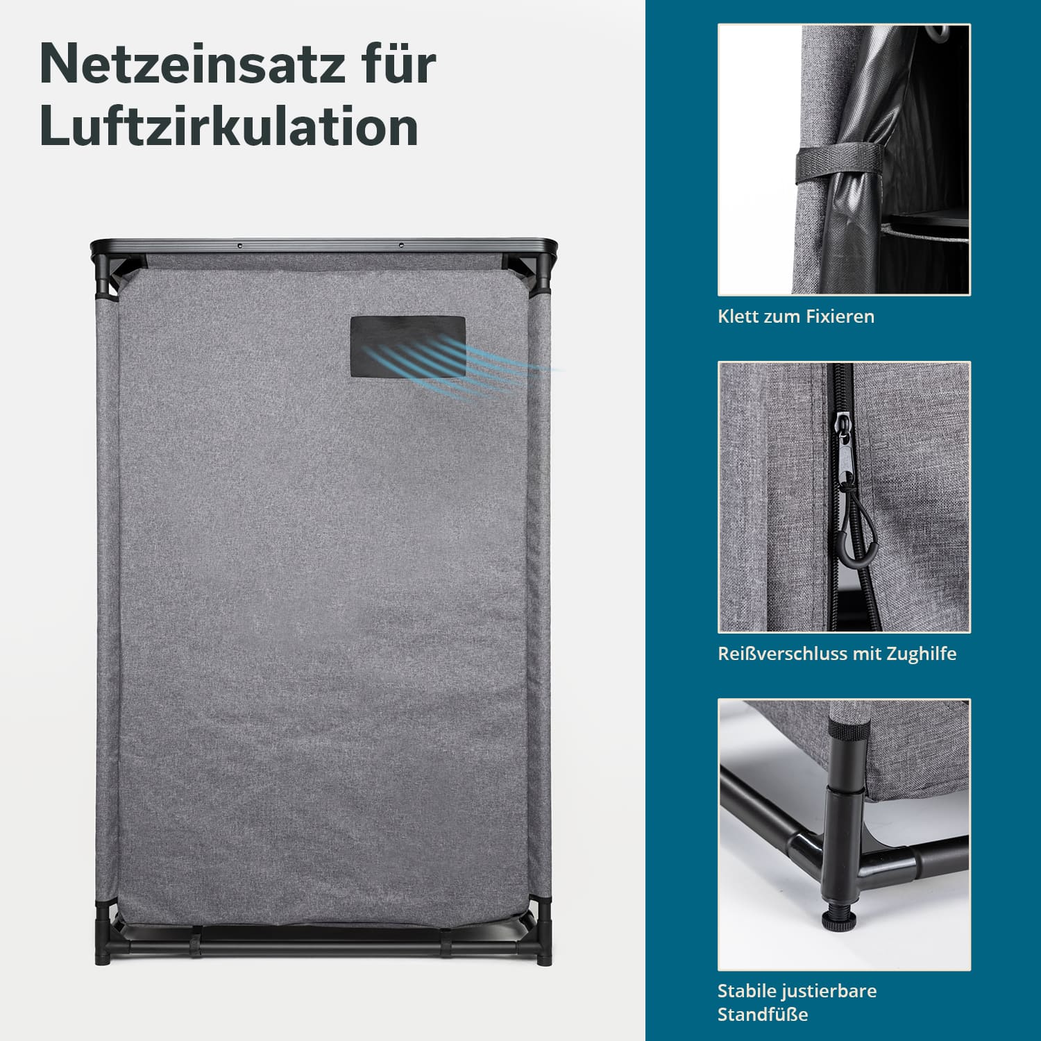 • Tissu maillé cousu à l'arrière pour une bonne circulation de l'air dans l'armoire