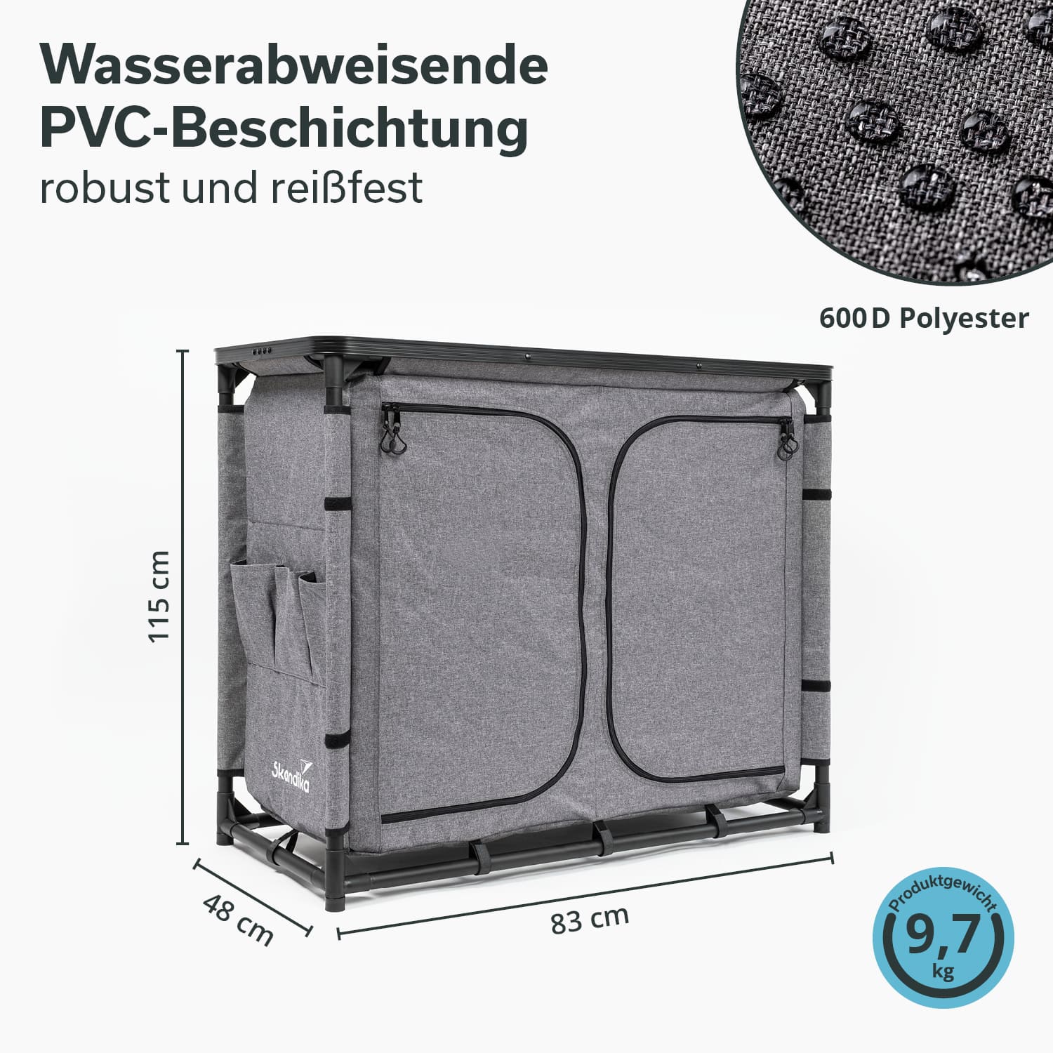 Nouvelle venue dans la gamme Skandika Ruoka, cette armoire de camping polyvalente offre un grand espace de rangement tout en occupant un minimum d'espace au sol dans la tente. Elle constitue la solution idéale pour tous ceux qui souhaitent ranger leurs vêtements de manière ordonnée, organiser leur cuisine de camping ou stocker leurs provisions de manière claire et organisée. Que ce soit comme armoire de camping dans la tente ou comme solution de rangement pratique dans la chambre d'amis à la maison, la Ruoka s'adapte avec souplesse aux besoins individuels et permet de mettre de l'ordre dans les espaces les plus réduits.
