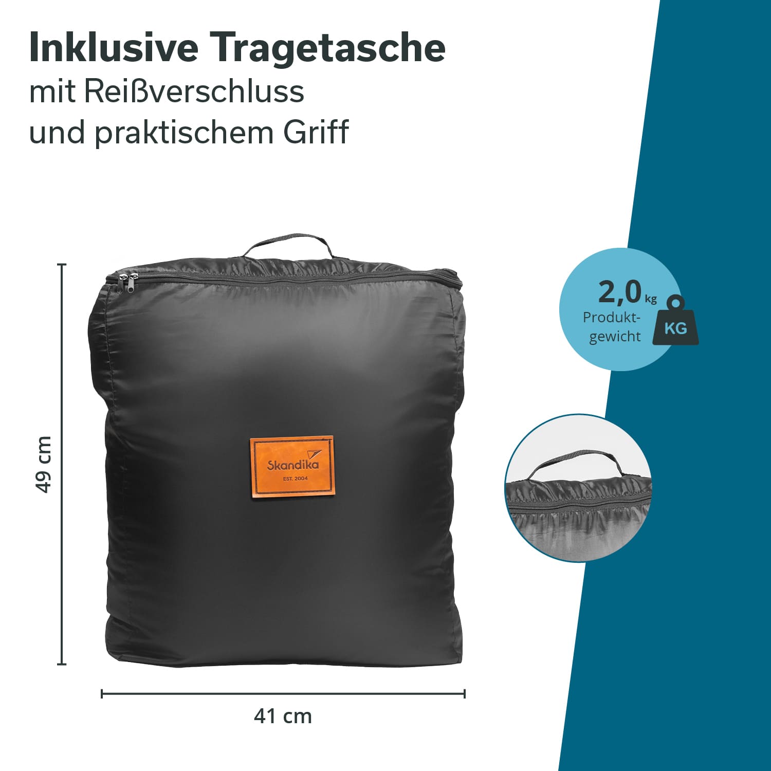 Après vos vacances en camping, le tapis propre et sec peut être facilement transporté dans le sac de rangement et stocké à l'abri de la poussière jusqu'à sa prochaine utilisation. La grande ouverture avec fermeture éclair facilite la manipulation.