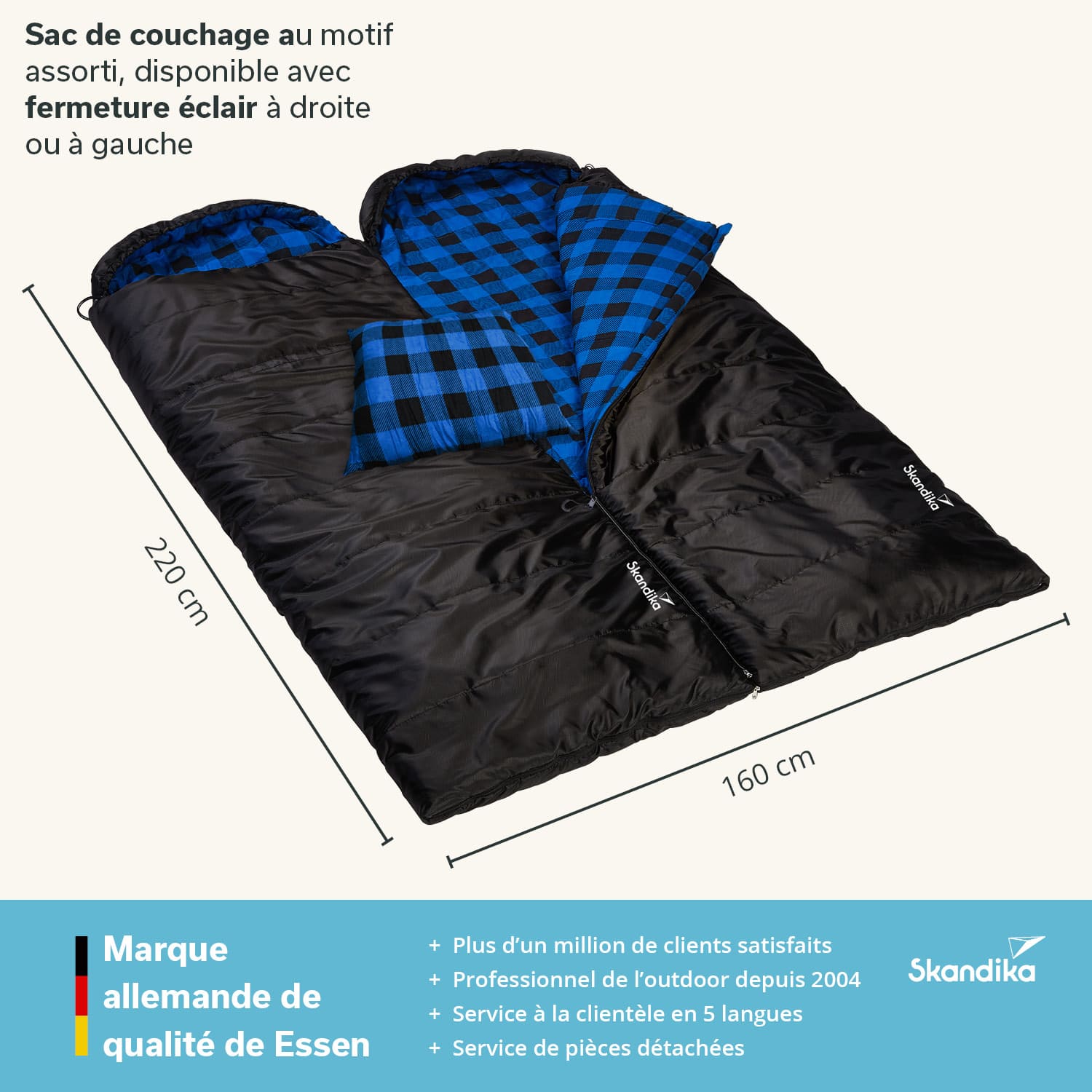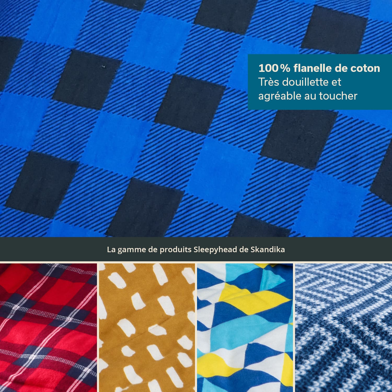 La matière merveilleusement douce de la housse en flanelle est agréable au contact de la peau. La couleur et le motif sont parfaitement assortis à nos sacs de couchage Dundee pour un look global chic en camping et autres aventures en plein air.