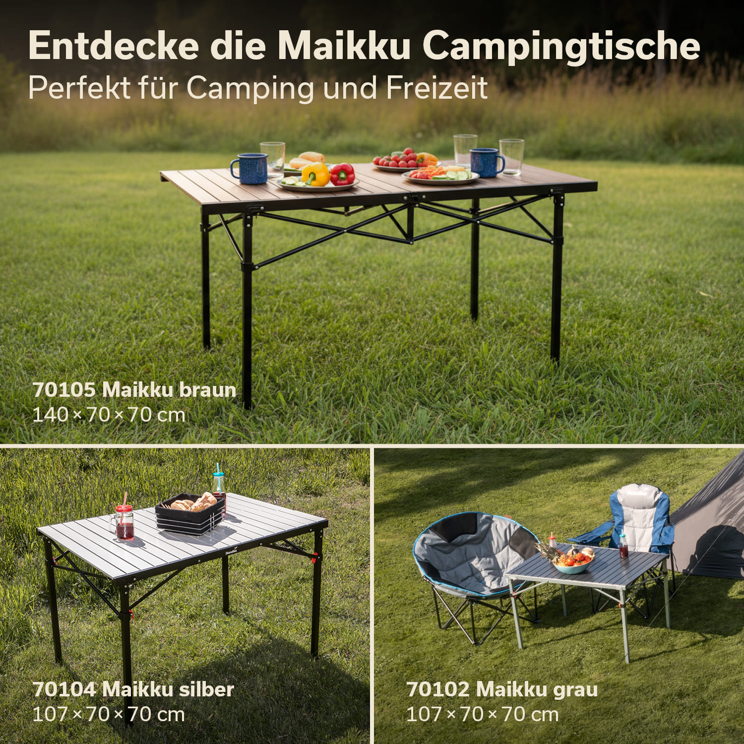 Alliant stabilité, grande capacité de charge et encombrement réduit, la table Maikku 140 × 70 × 70 est le compagnon idéal pour le camping et les pique-niques, ou même dans la salle à manger à la maison lorsque vous recevez des invités.