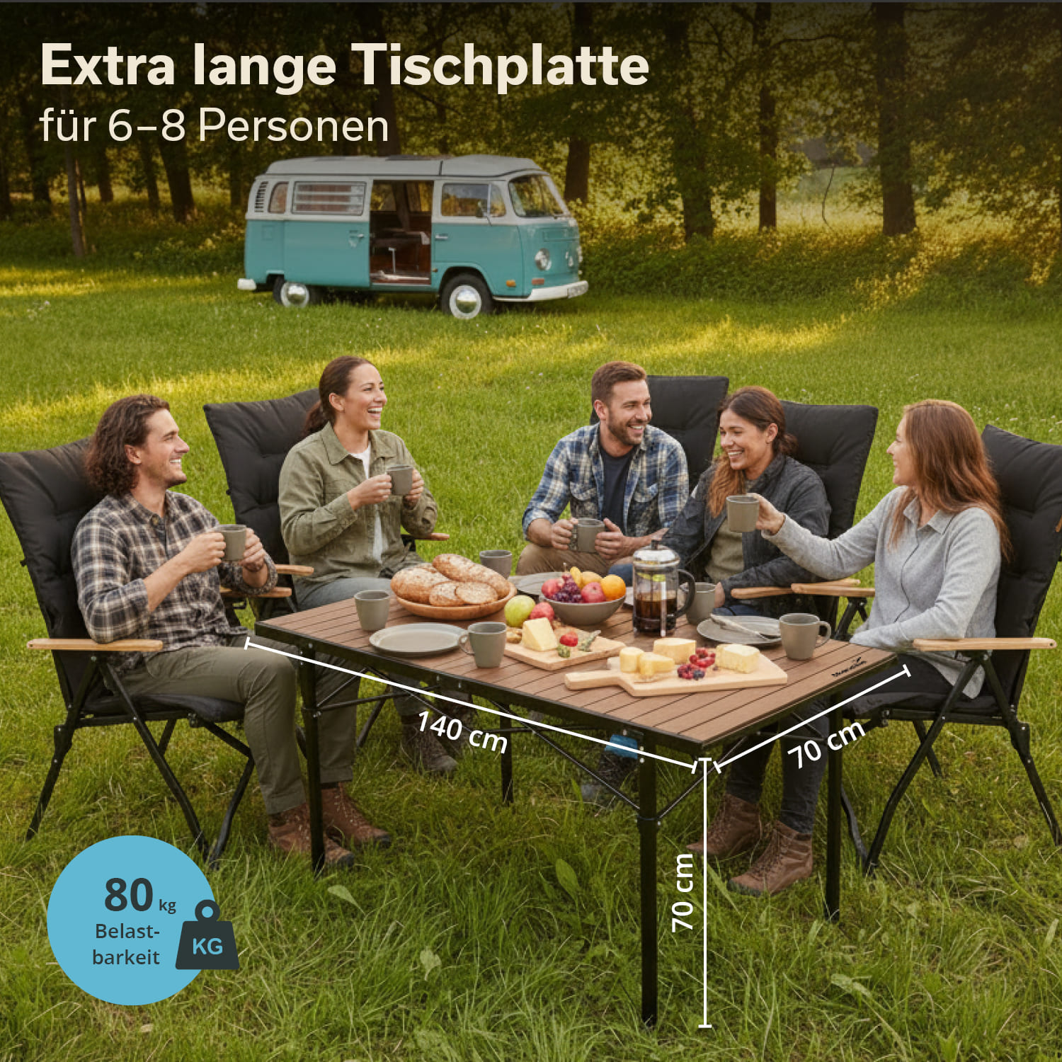 Tout le monde le sait : « C'est autour d'une table que naissent les plus beaux souvenirs. » Et la table de camping Skandika Maikku (140 × 70 × 70) peut accueillir confortablement jusqu'à 6 personnes pour créer ensemble de beaux souvenirs en plein air. Alliant stabilité, grande capacité de charge, montage sans outils et encombrement réduit, l'élégante table Maikku est le lieu idéal pour créer de beaux souvenirs, que ce soit en camping, lors d'un pique-nique en famille ou même dans la salle à manger à la maison, lorsque vous recevez quelques invités supplémentaires.