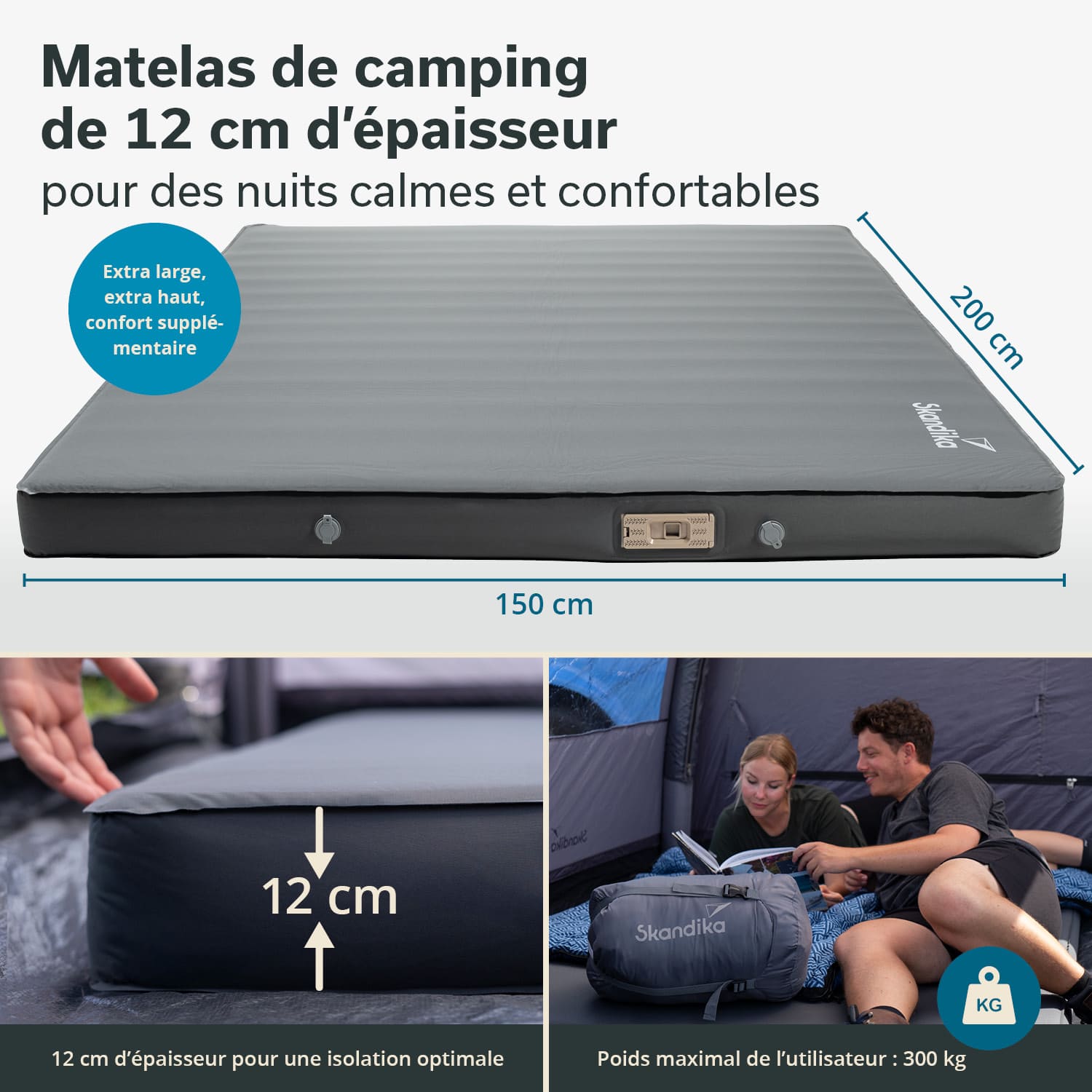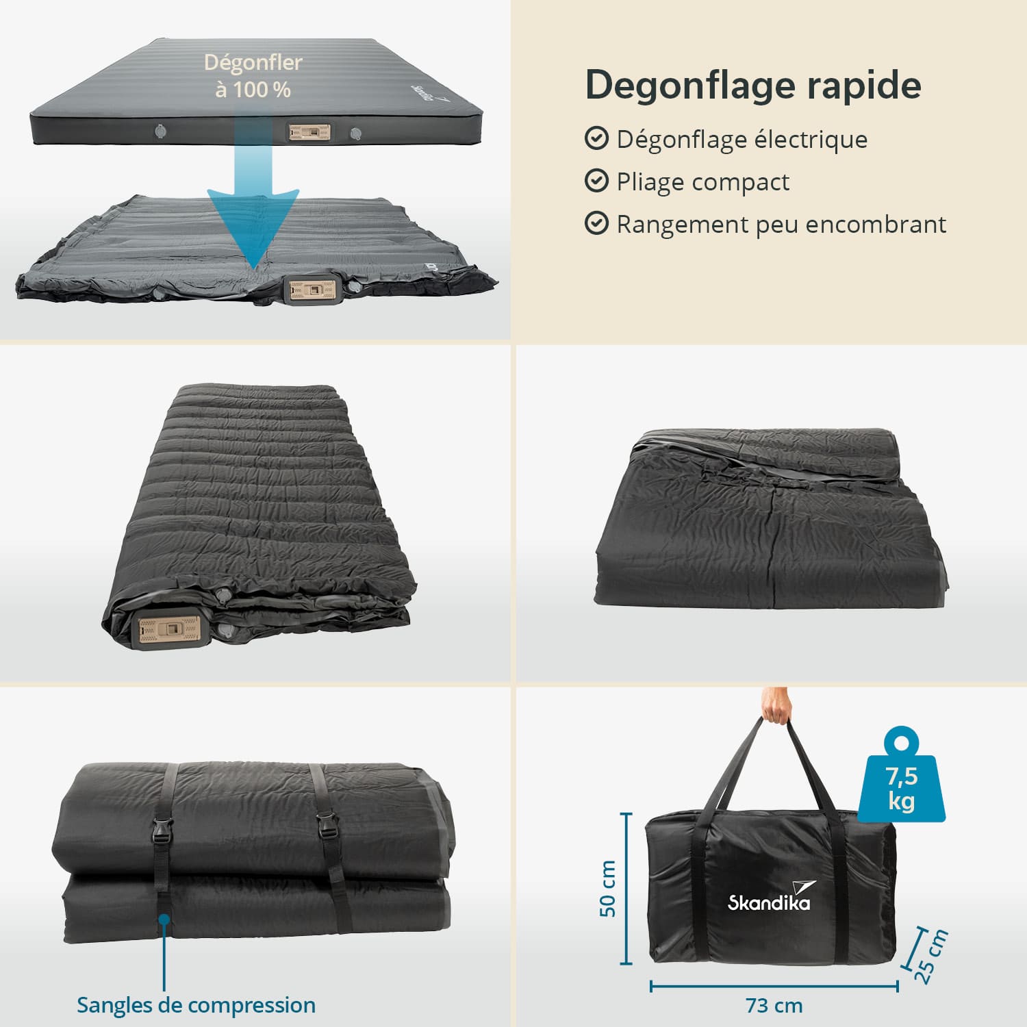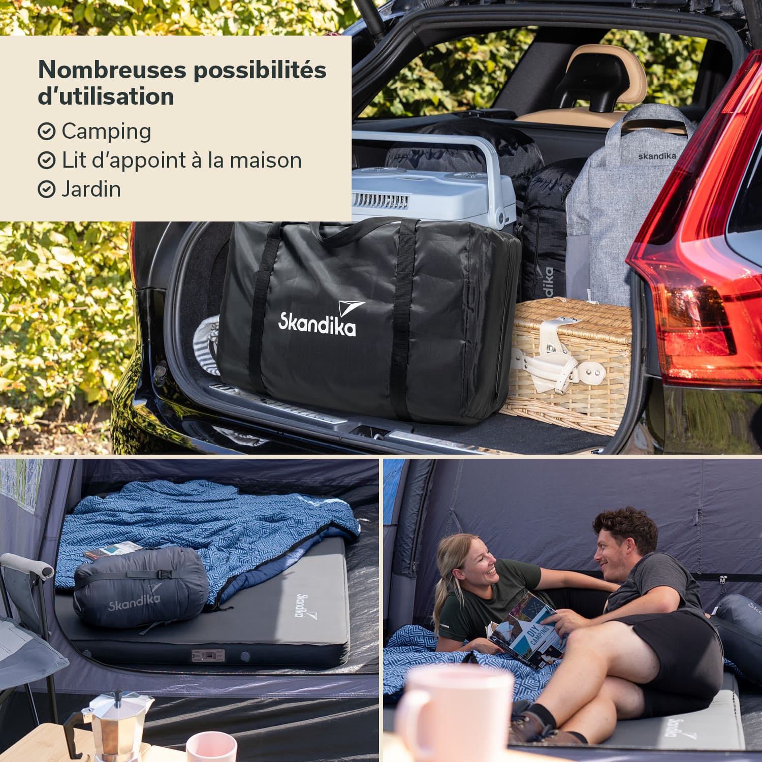Le matelas double Skandika Easy 3D Premium Flex révolutionne l'expérience du sommeil en plein air grâce à sa pompe rechargeable intégrée. Ce matelas innovant allie une technologie de pointe à un confort de couchage luxueux pour une multitude d'utilisations. Du camping au lit d'appoint, le Easy 3D Premium Flex impressionne par son montage et son démontage faciles, son espace généreux et son excellente isolation.