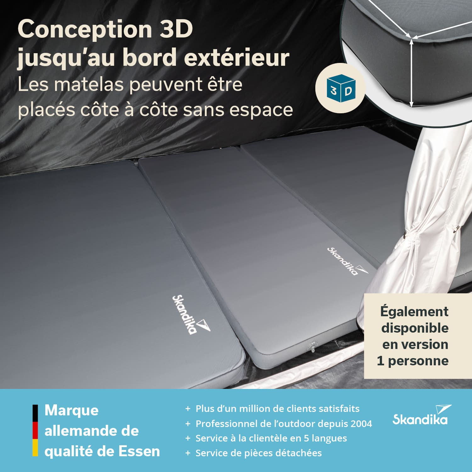 Le matelas Easy 3D Premium Flex allie un confort de sommeil optimal à une technologie intelligente. Il est idéal pour le camping, les voyages en van ou comme lit d'appoint à la maison.