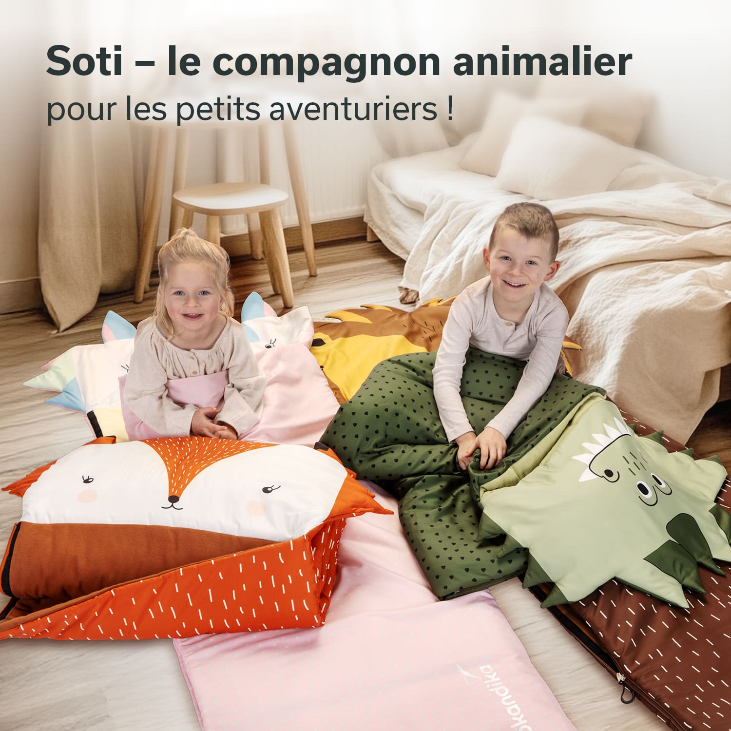 Les jolis motifs d'animaux invitent littéralement à la collection ! Les frères et sœurs ou les amis peuvent composer leur propre zoo de sacs de couchage et vivre ensemble de superbes aventures avec leurs compagnons animaux.