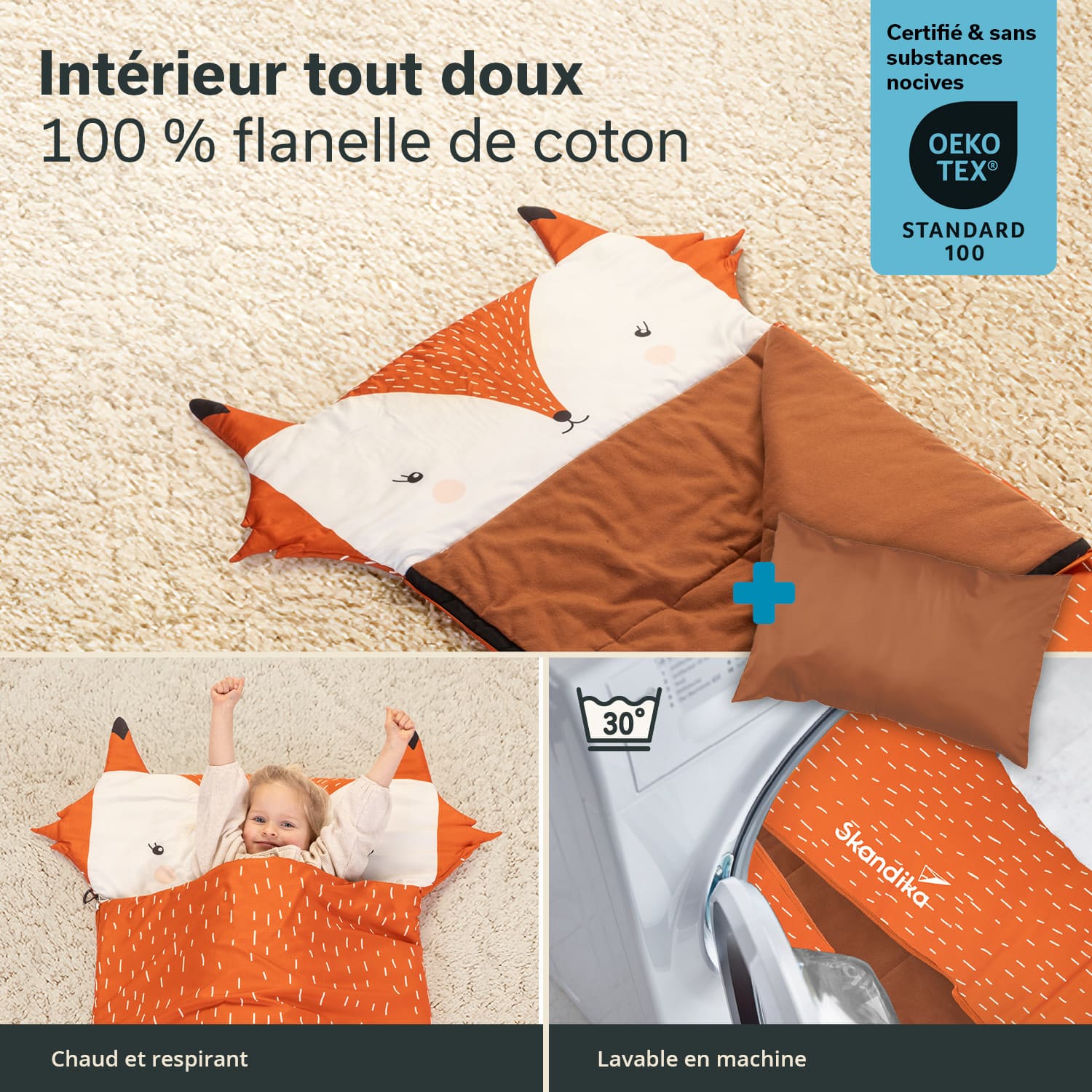 • La certification OEKO-TEX® 100 des matériaux assure la haute qualité du sac de couchage
