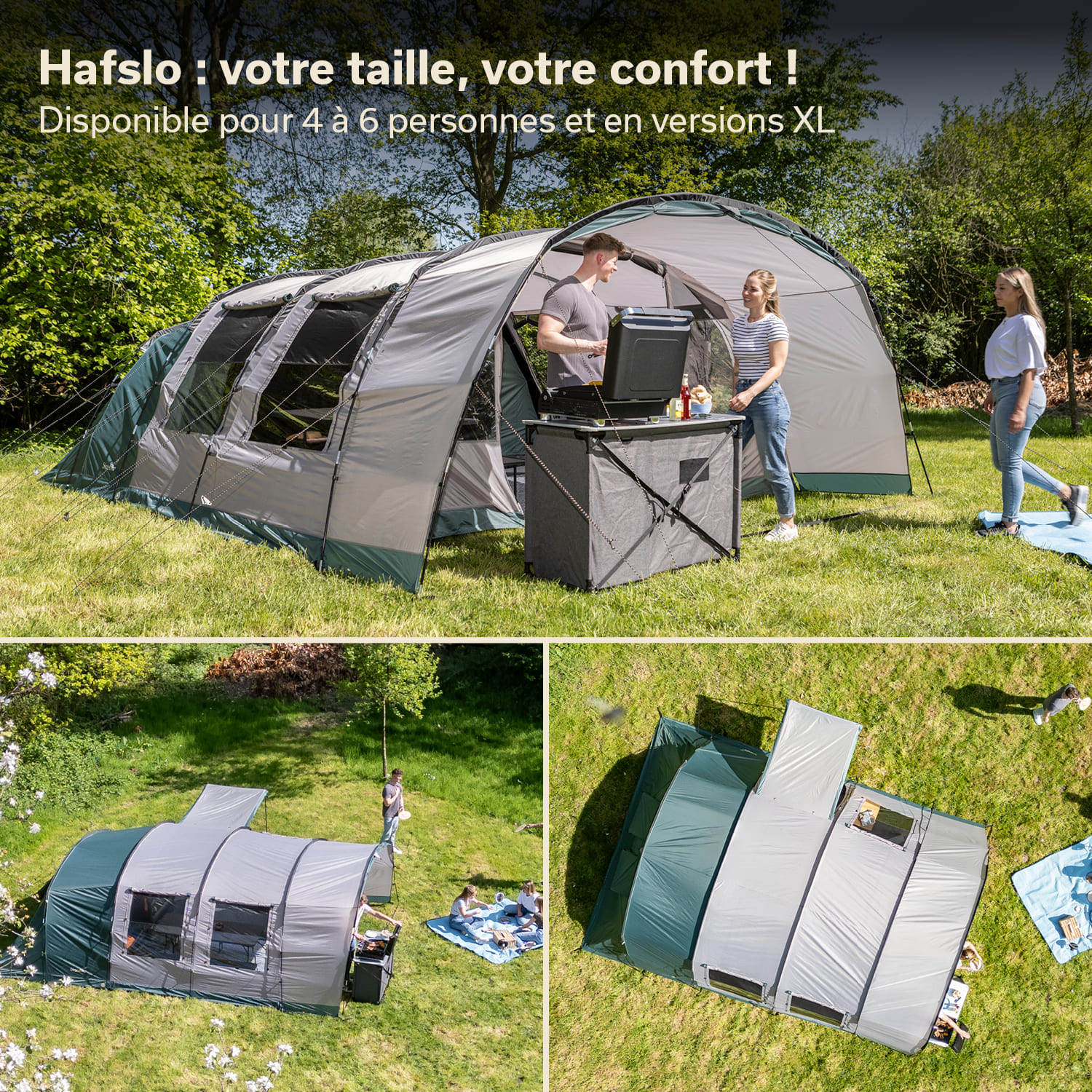 La Hafslo 6 XL Sleeper Protect fait bonne figure sur tous les terrains de camping et est également parfaite pour le prochain festival de musique. Et lorsque les vacances sont terminées, le sac de transport robuste facilite le transport et le rangement de la tente à l'abri de la poussière.