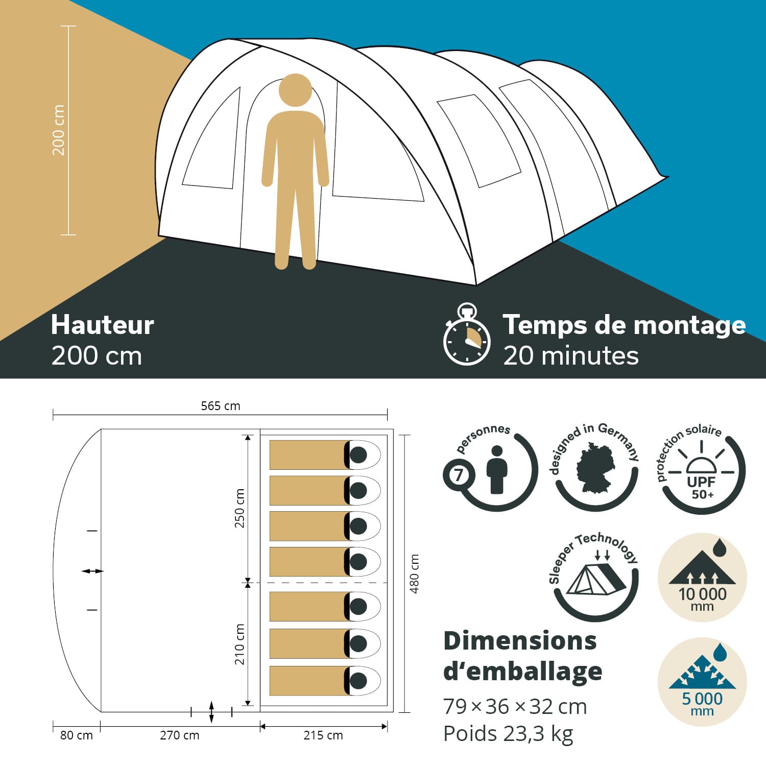 Informations sur le produit "Tente tunnel Egersund 7 XL Sleeper Protect"