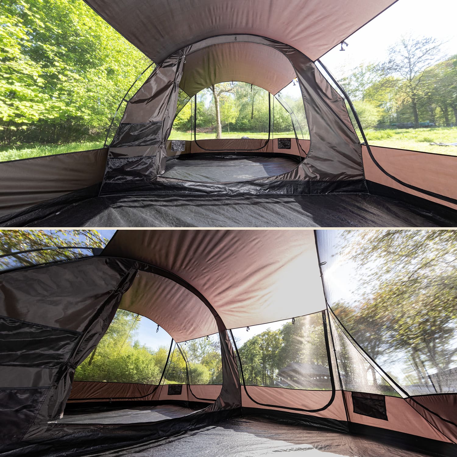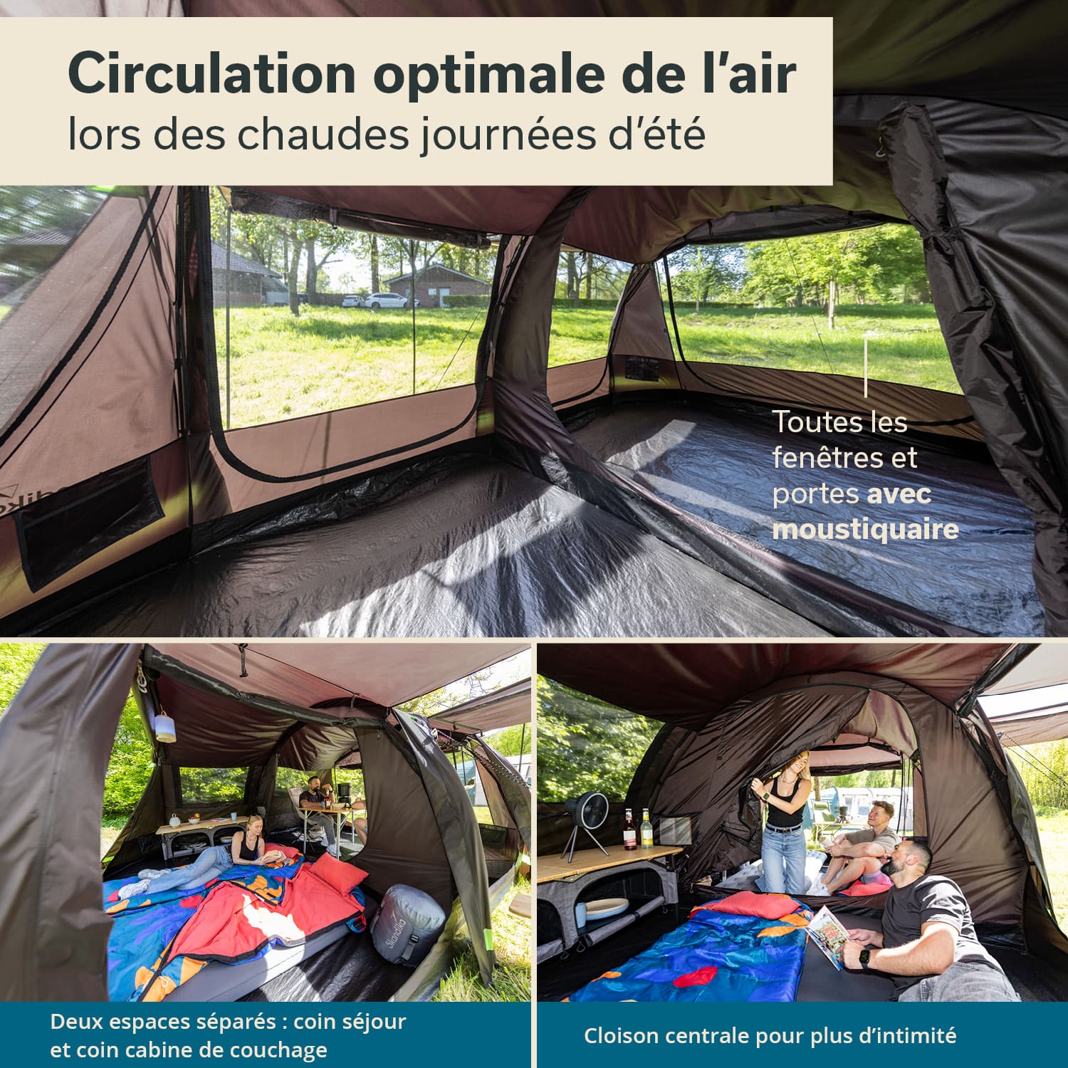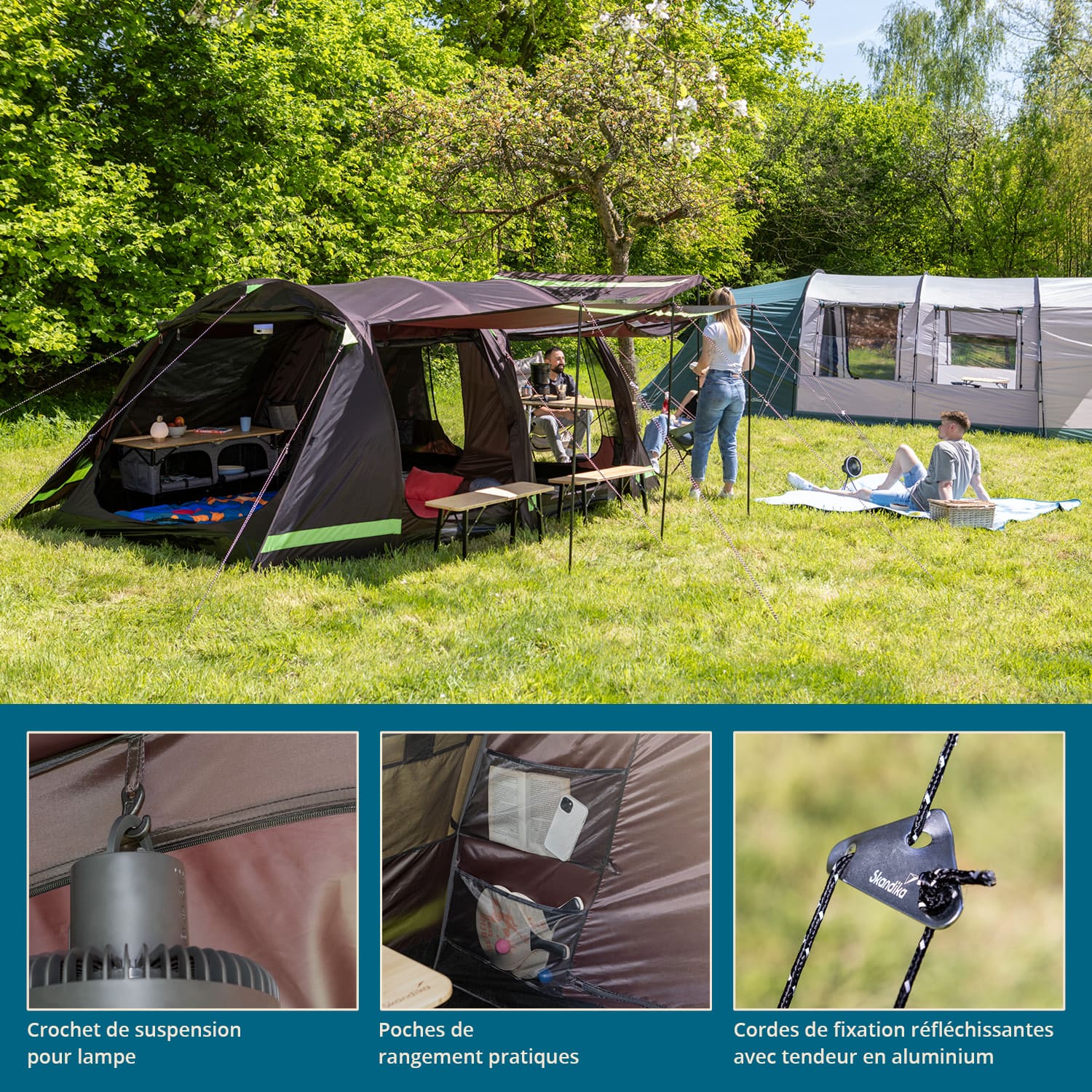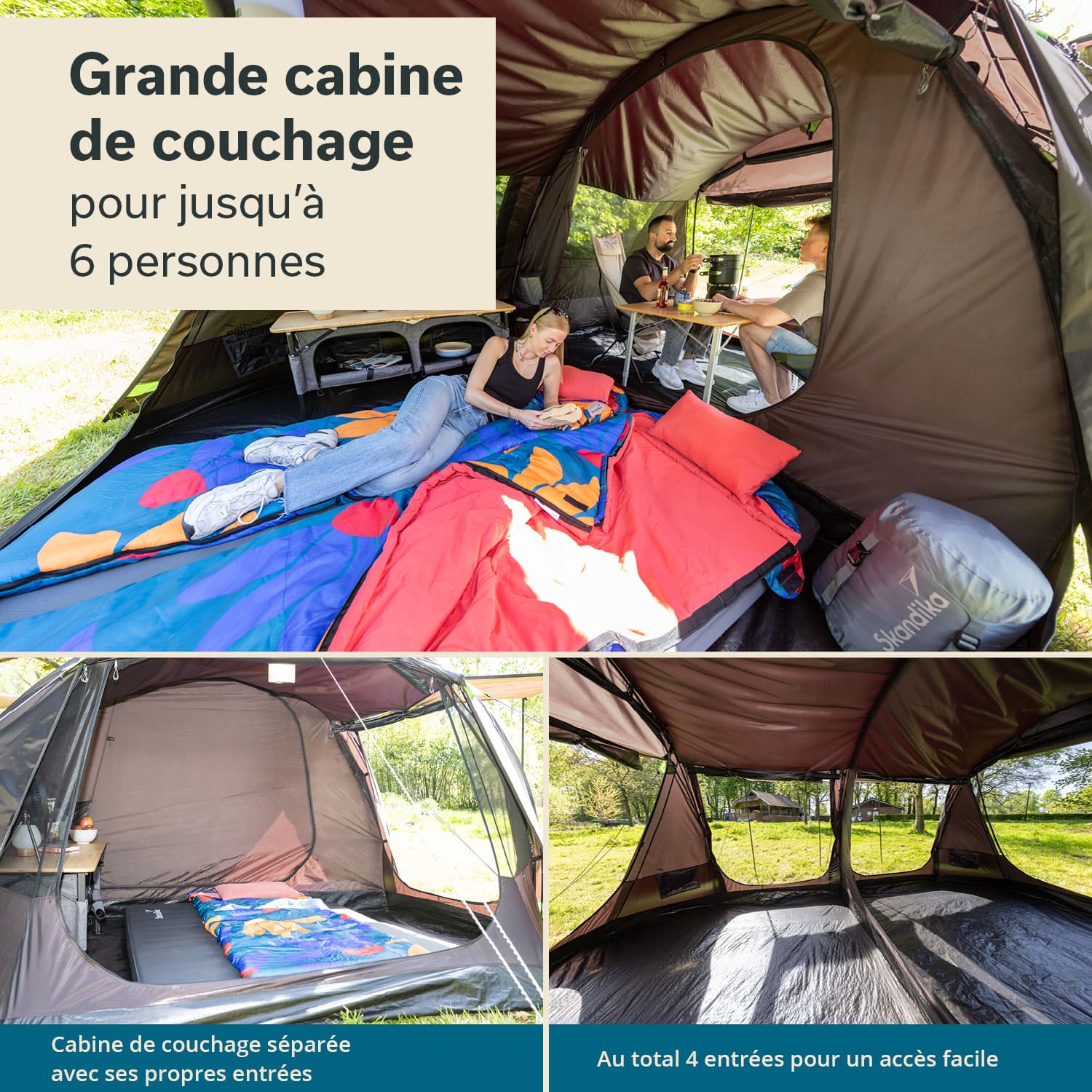 - Tente à double paroi pour 6 personnes avec 4 entrées et 2 fenêtres au total