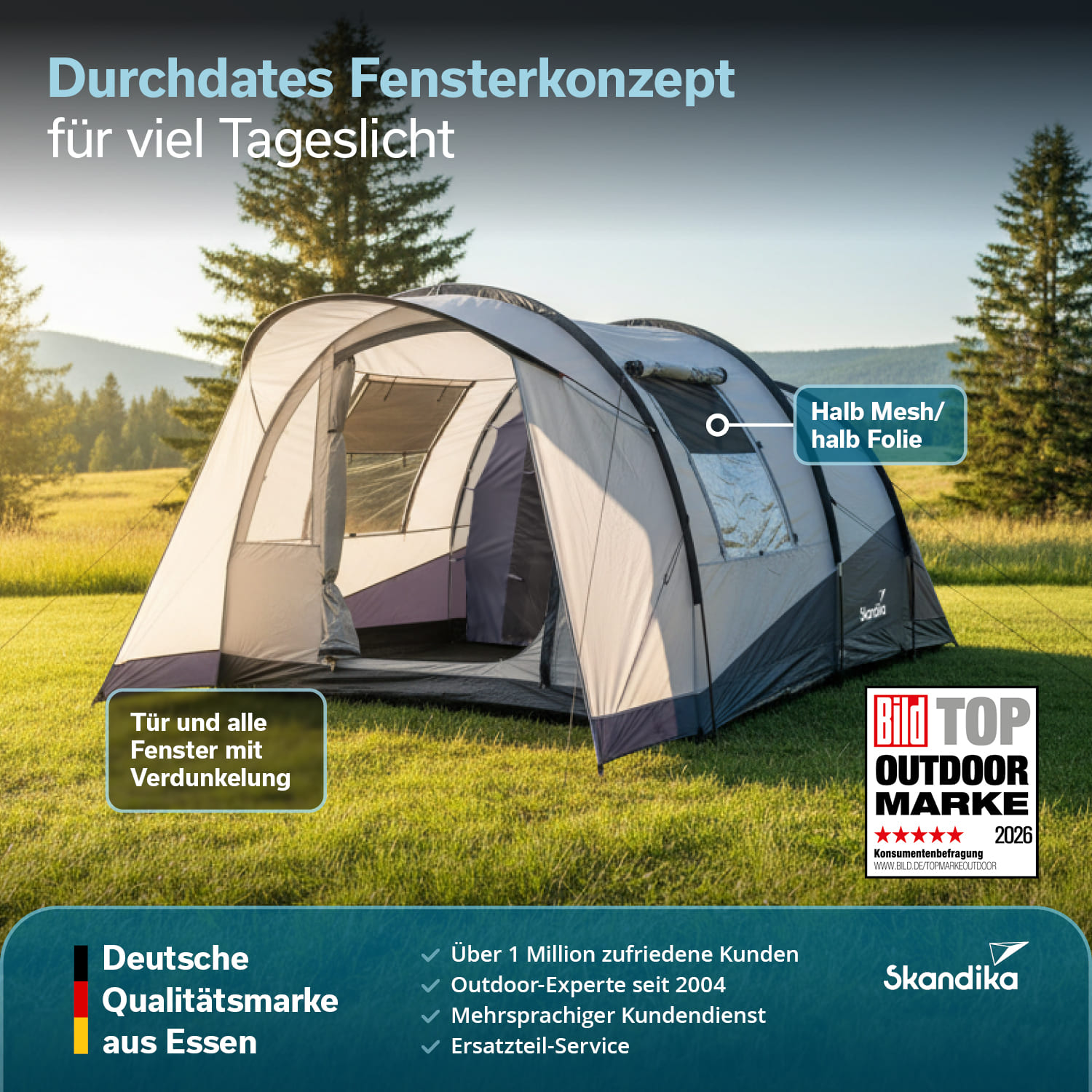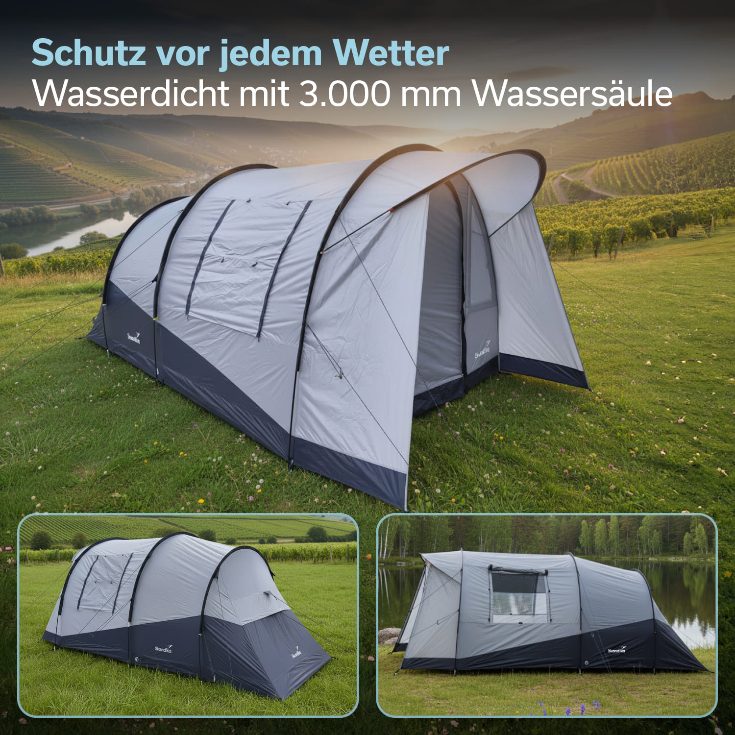 La Skandika Isken 3 Protect fait partie de la gamme Isken, composée de tentes tunnel bien pensées qui allient habilement confort, fonctionnalité pratique et résistance aux intempéries. Ce modèle est idéal pour les escapades du week-end entre amis et constitue un excellent choix pour les couples qui apprécient de disposer de plus d'espace, même lors de vacances plus longues.