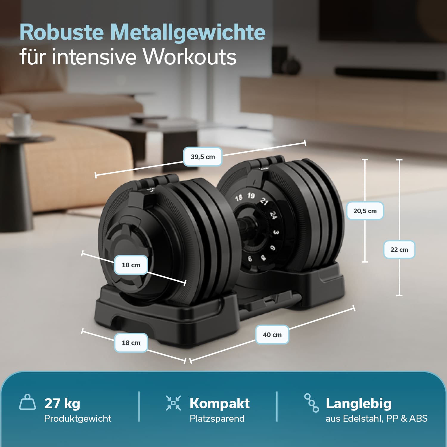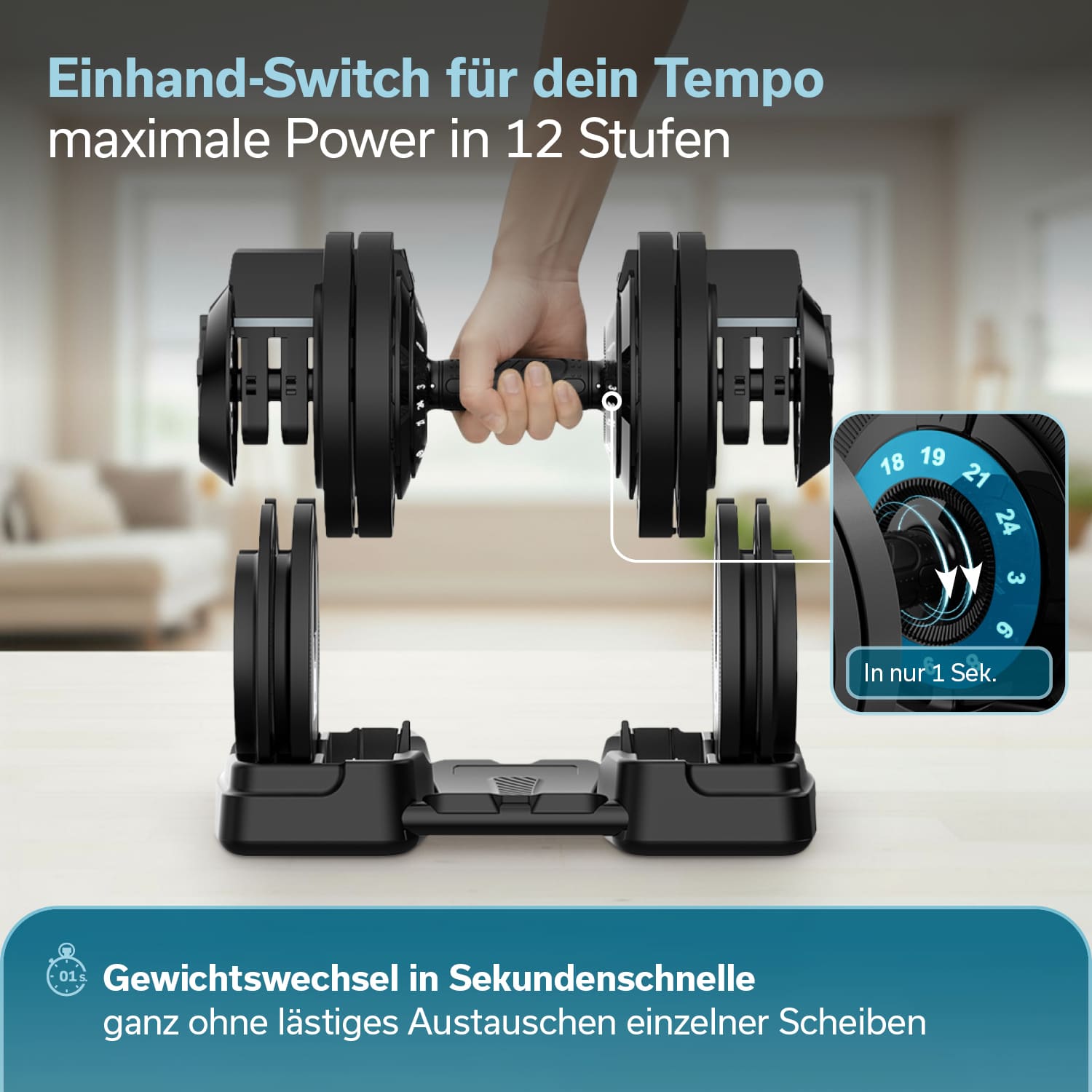 - Haltère réglable avec 12 niveaux de poids de 3 kg à 24 kg pour un entraînement musculaire progressif
