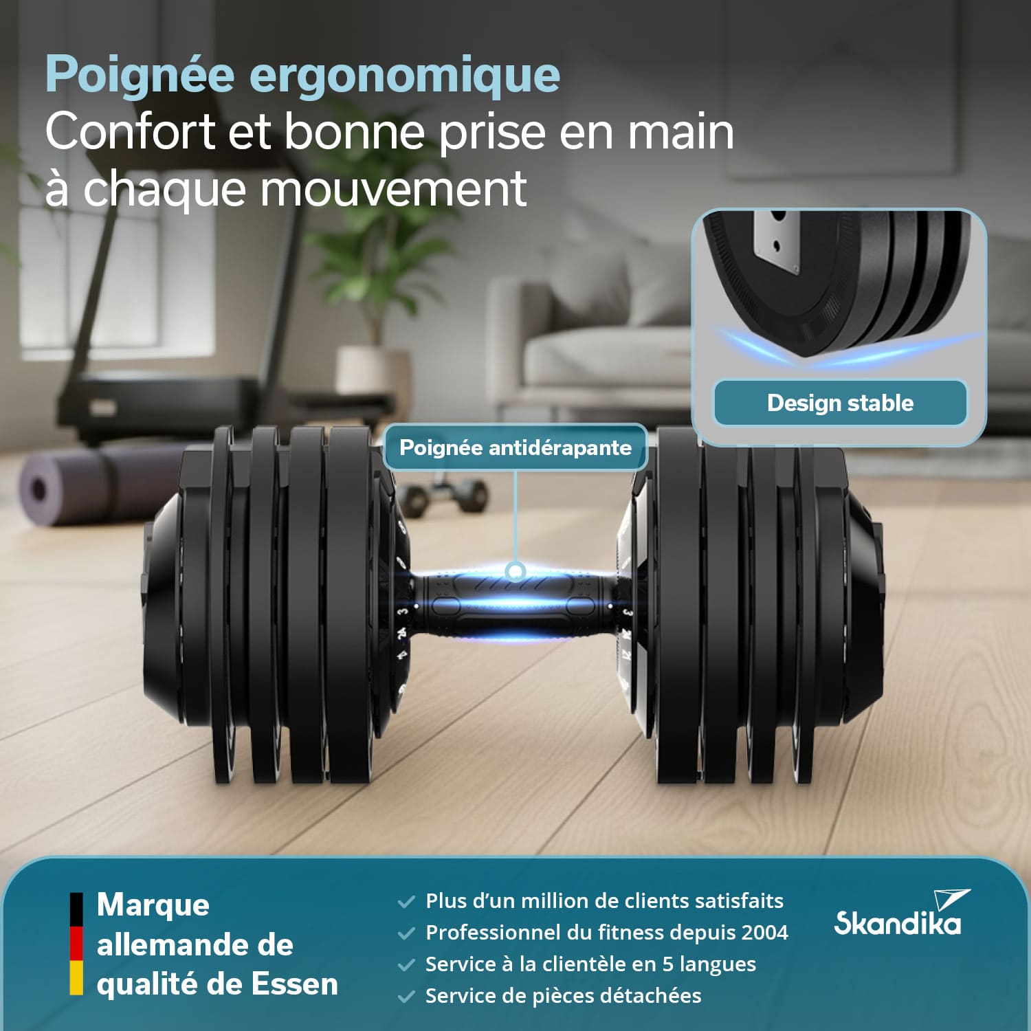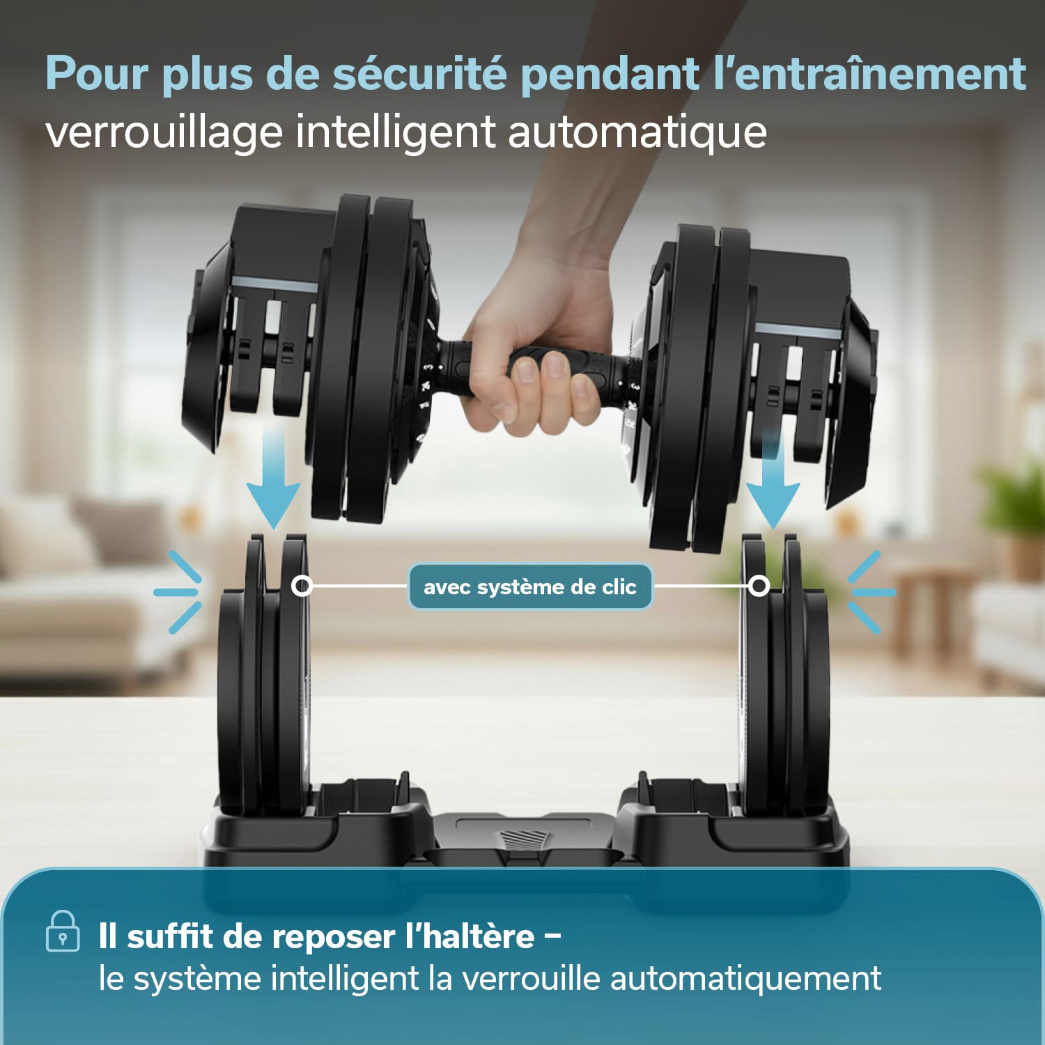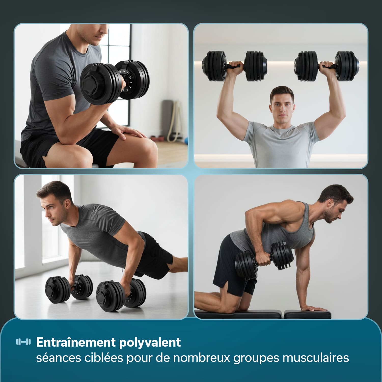 - Haltère réglable avec 12 niveaux de poids de 3 kg à 24 kg pour un entraînement musculaire progressif