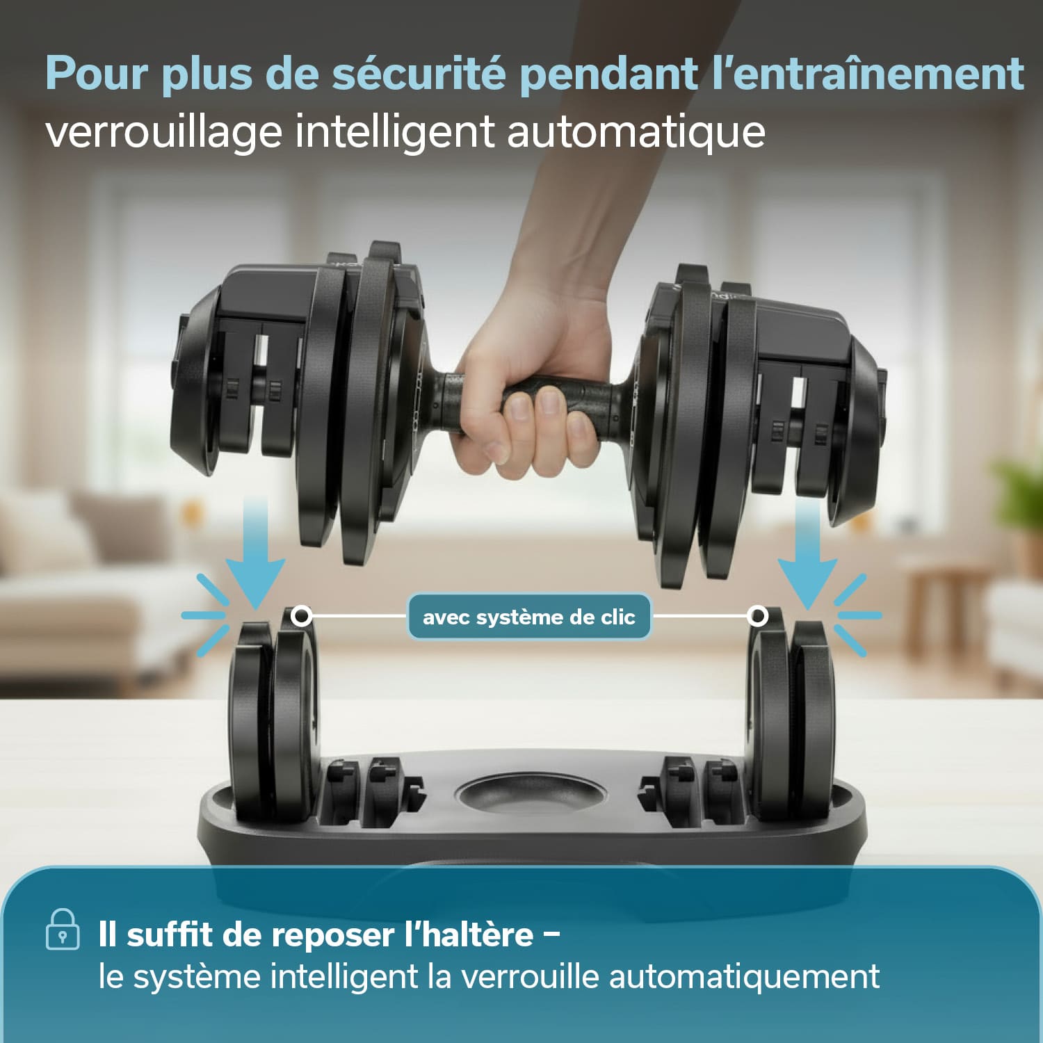 - Système innovant de changement rapide avec technologie d'auto-verrouillage pour un changement de poids en quelques secondes