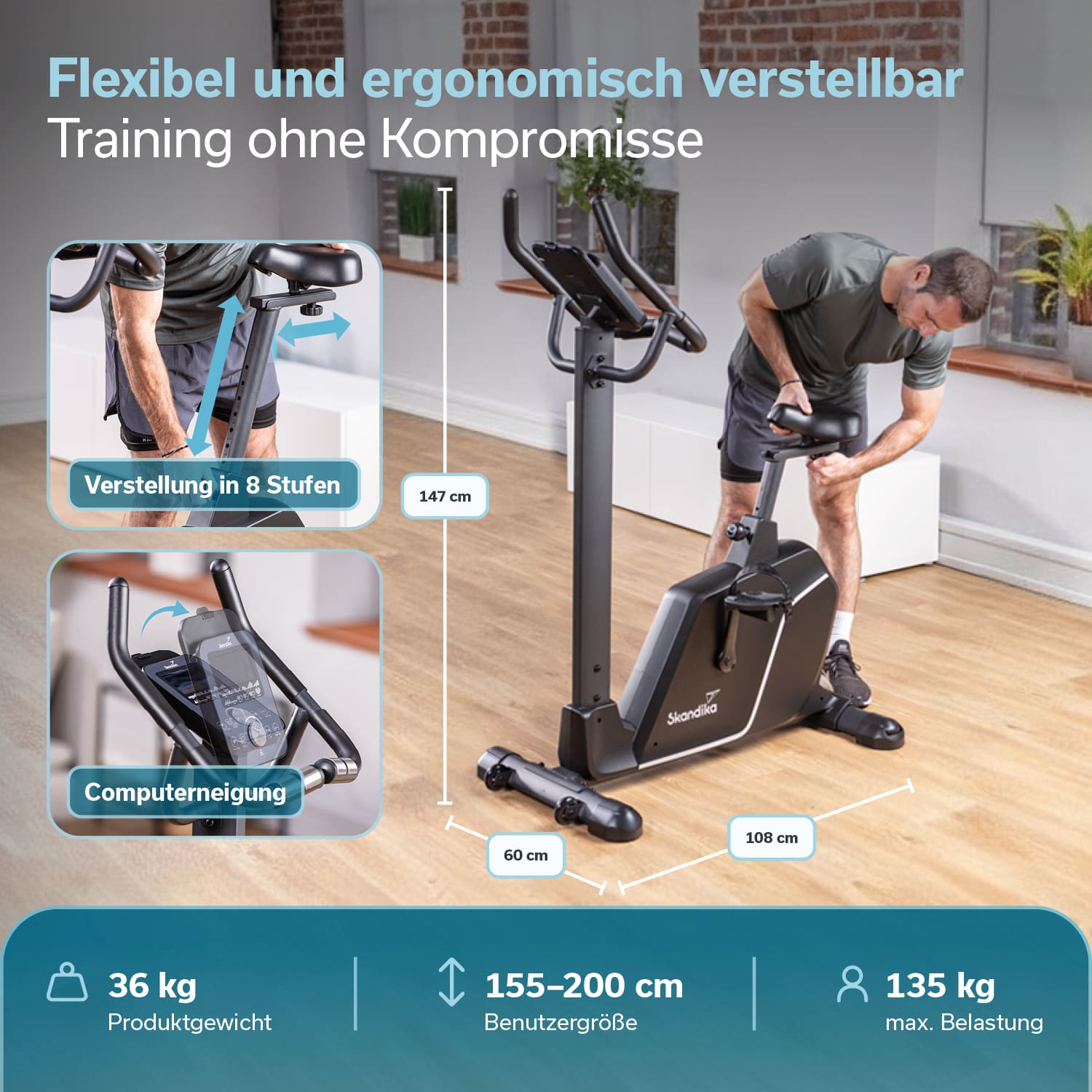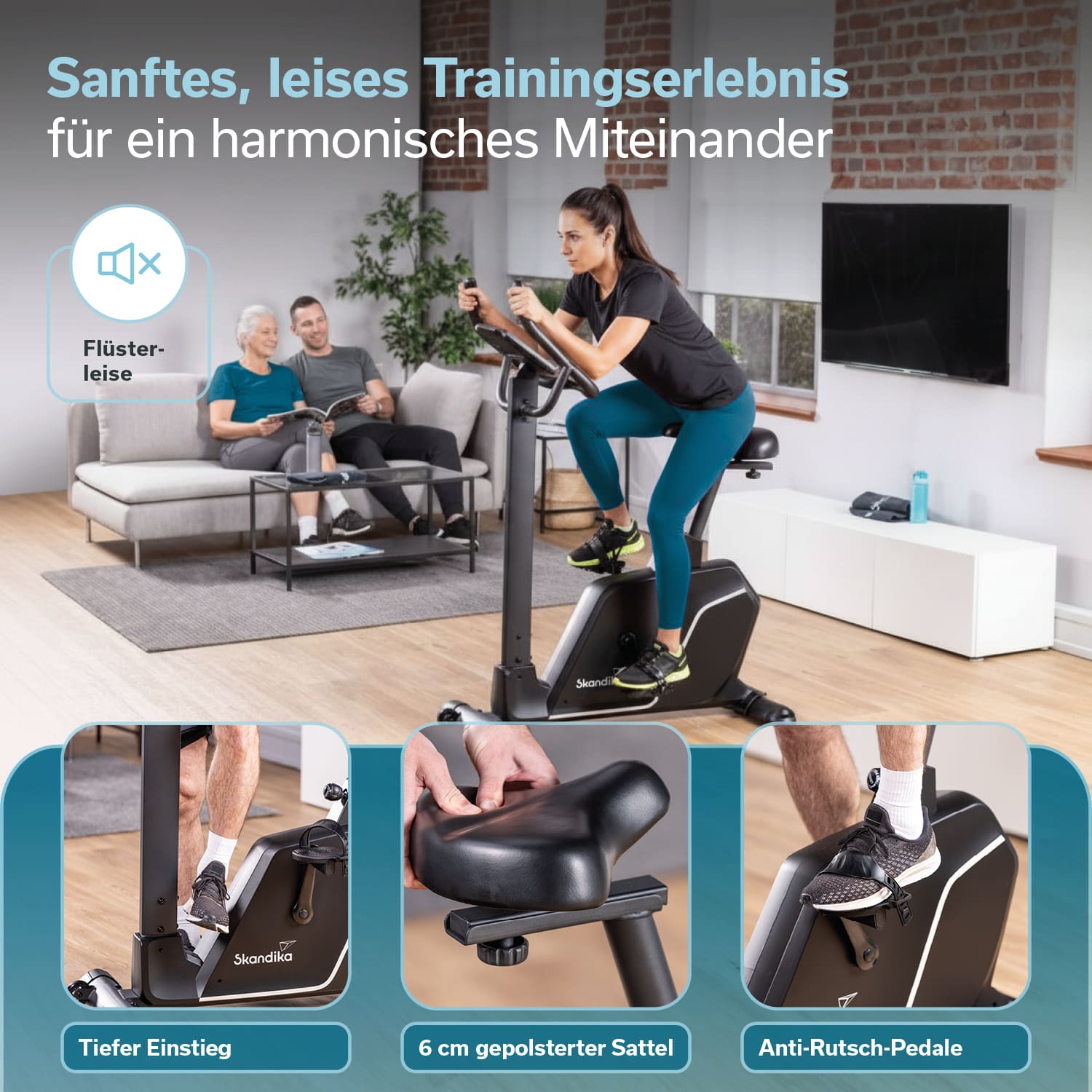 Le vélo d'appartement ergomèrte Skandika Cykling P10 allie une technologie de pointe à un design convivial pour un entraînement cardio efficace à domicile. Avec ses équipements polyvalents et son design compact et élégant, cet appareil de fitness performant offre les conditions optimales pour un entraînement ciblé et motivant.