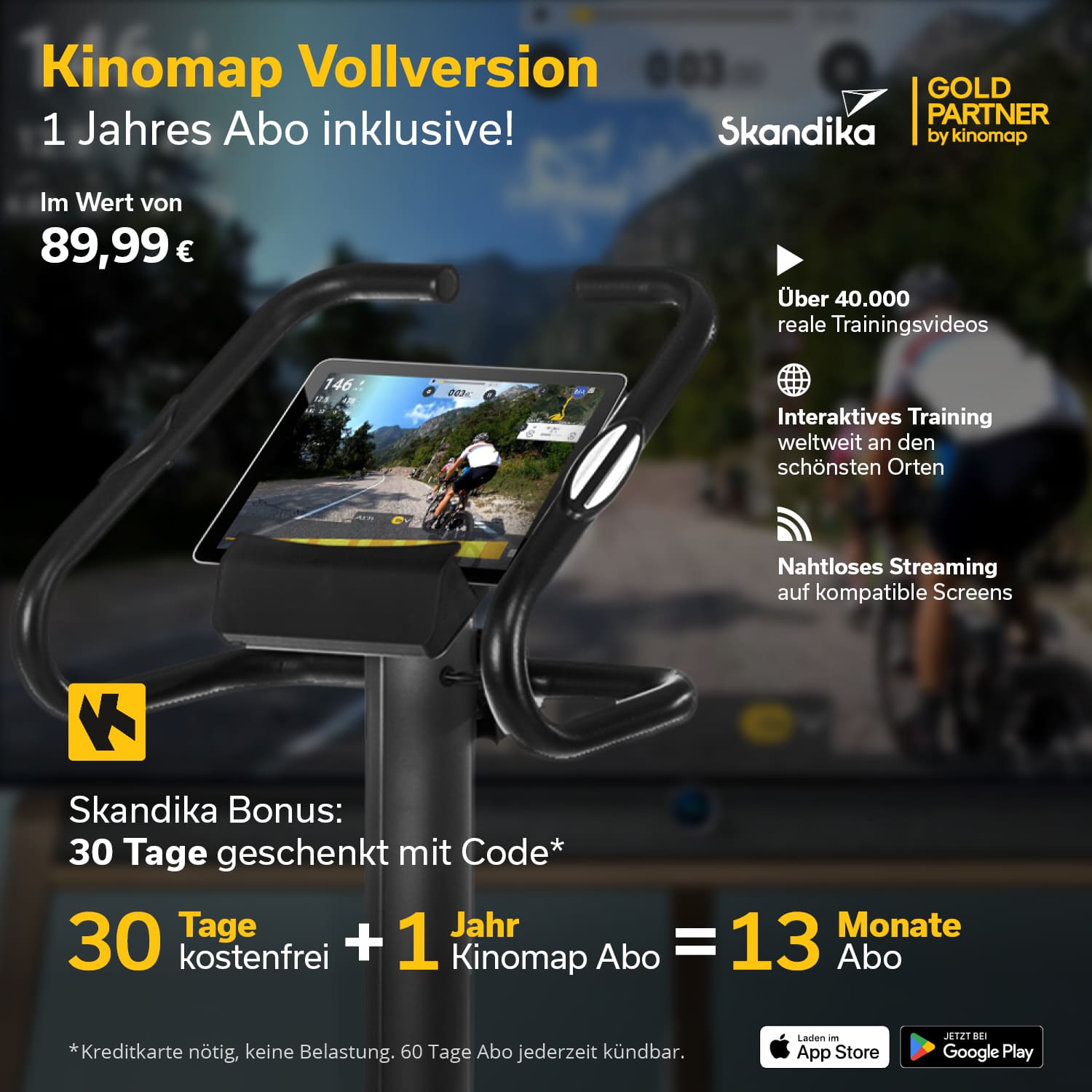 • Abonnement d'un an à Kinomap d'une valeur de 89,99 € inclus, avec 30 jours supplémentaires d'essai gratuit.