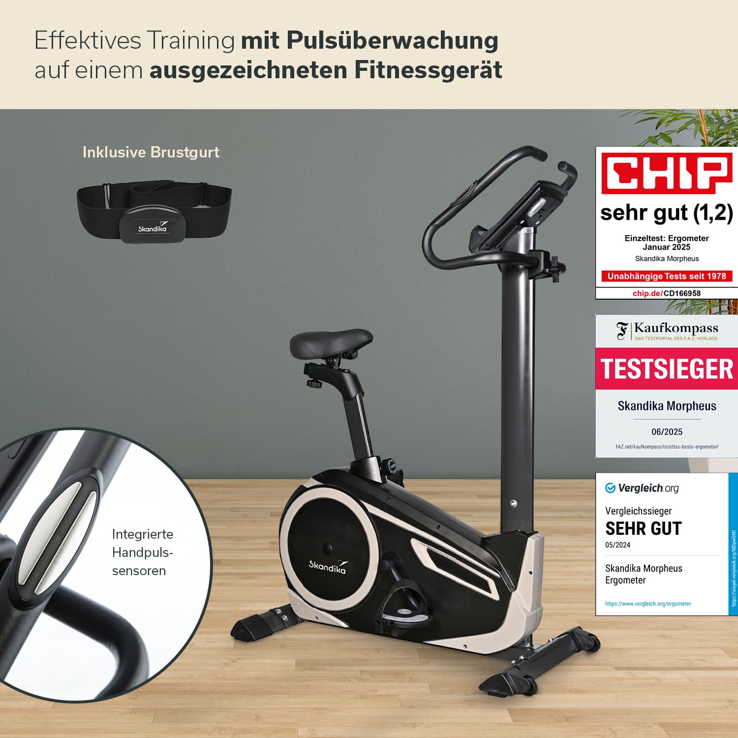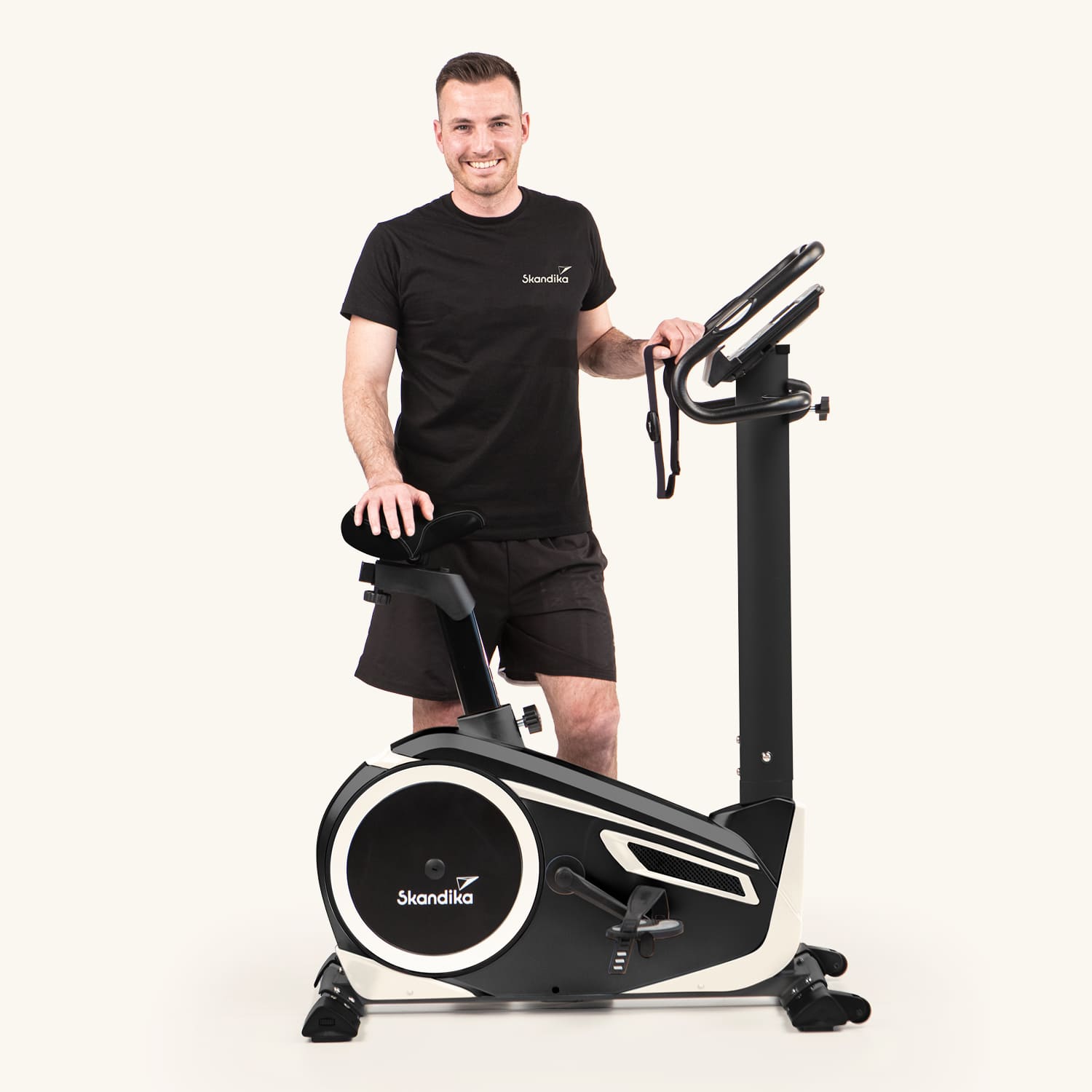 • Selle rembourrée confortable, capteurs de pouls intégrés au guidon, roulettes de transport, ceinture thoracique Skandika