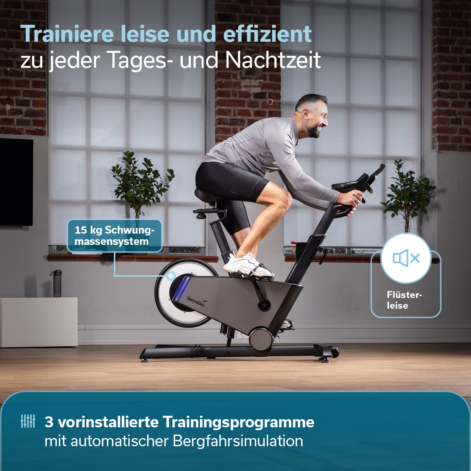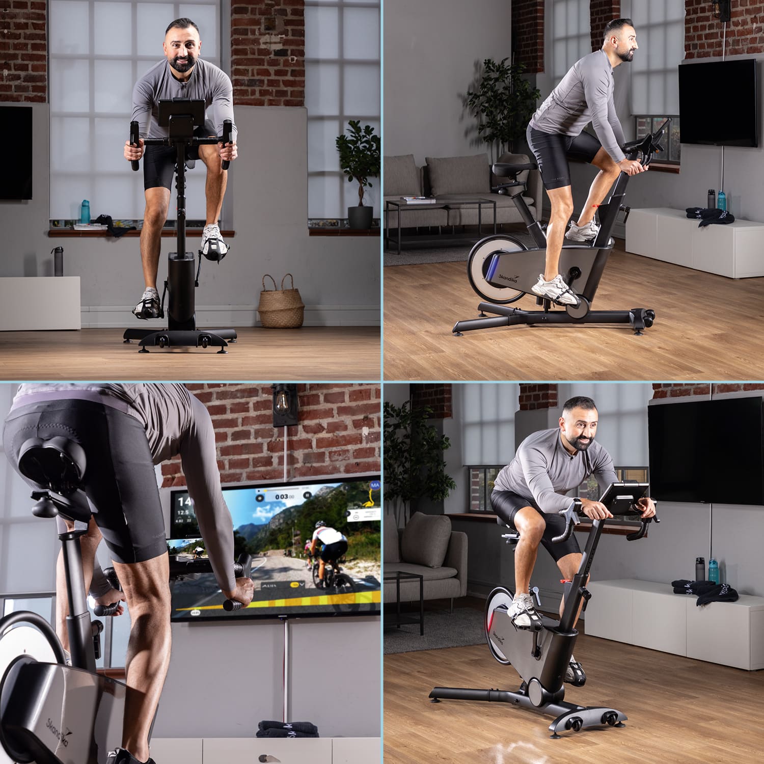La couleur noir-gris et la construction innovante avec un volant d'inertie placé à l'arrière lui confèrent un look épuré et ordonné. Son design élégant distingue le Kliva des vélos d'appartement classiques, qui se concentrent uniquement sur la fonctionnalité, et en fait un véritable accroche-regard dans les intérieurs modernes.