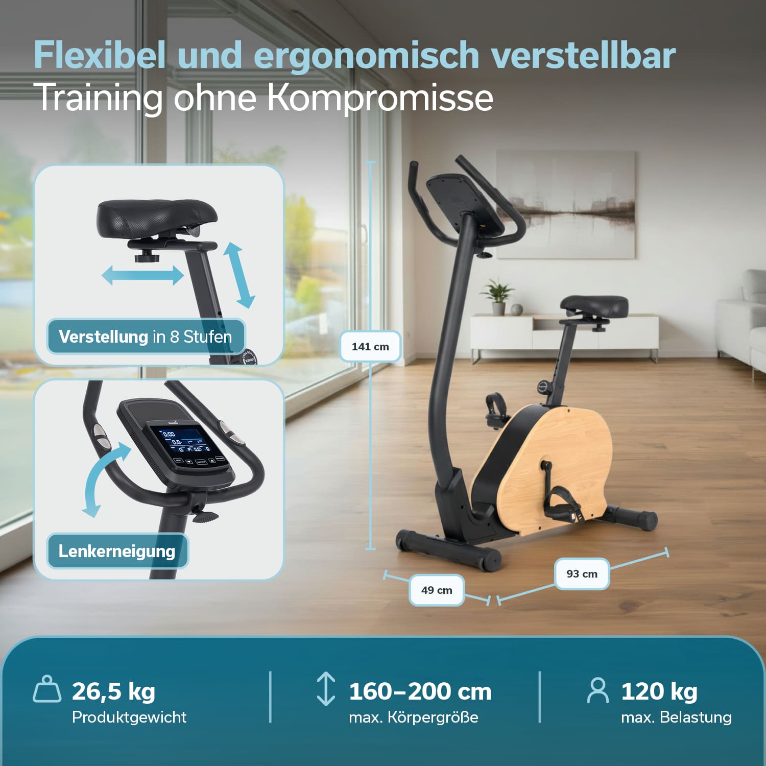 - Ergomètre puissant en fer robuste avec des éléments en bois véritable de haute qualité