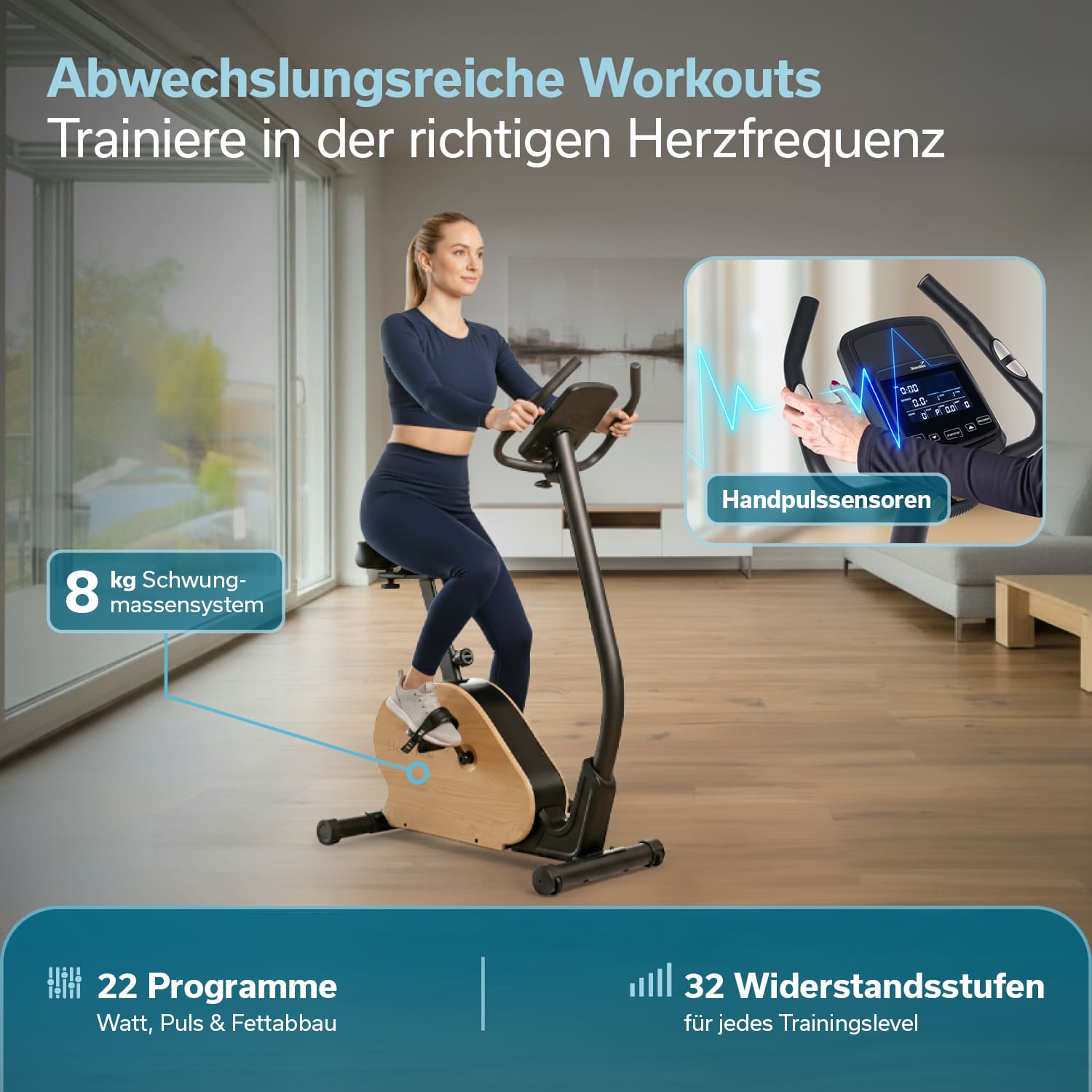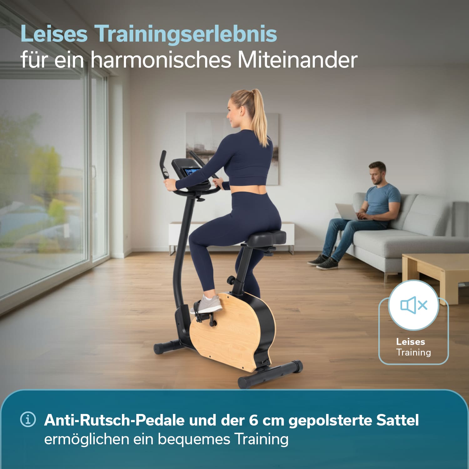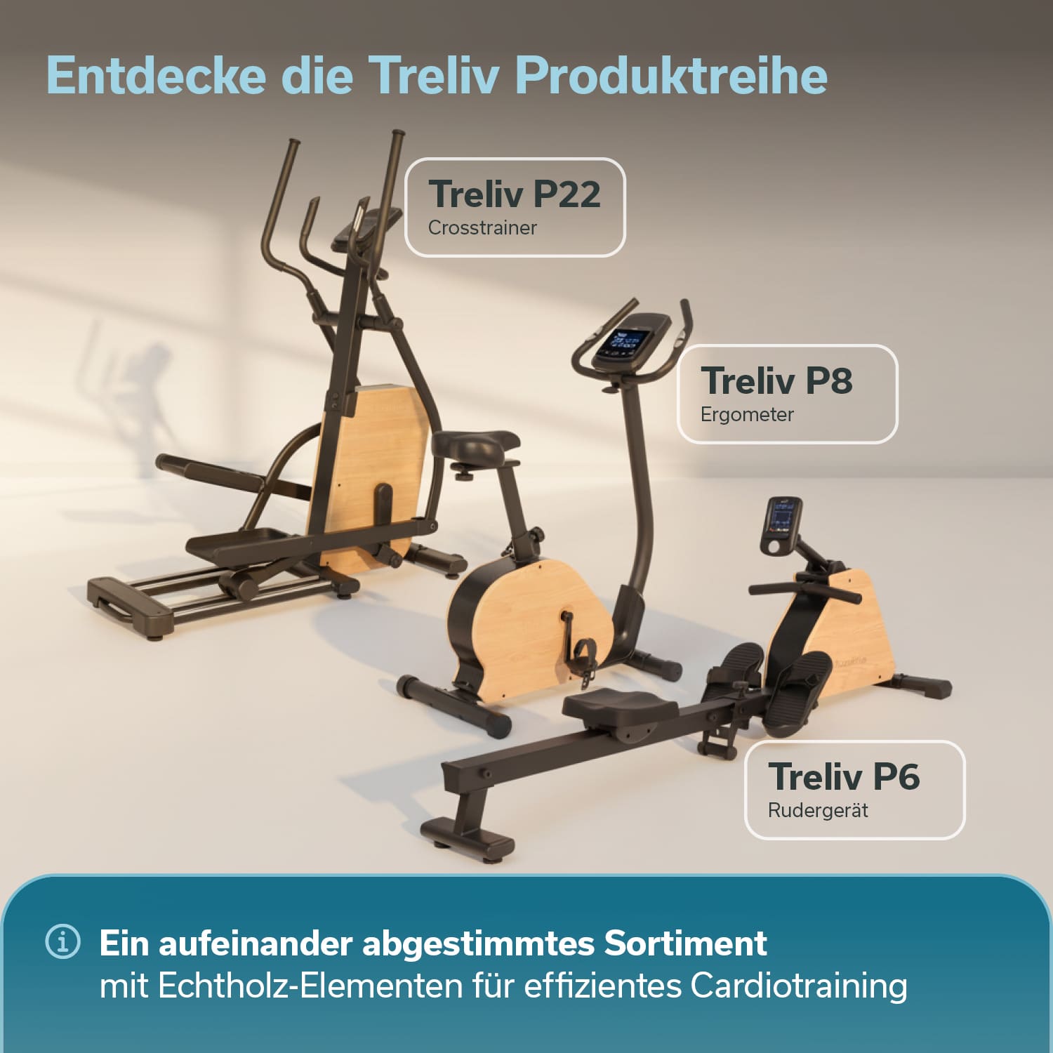 Issu de notre nouvelle gamme Treliv aux éléments en bois naturel, ce vélo d'appartement est efficace, élégant et performant. Avec ses 32 niveaux de résistance et ses 22 programmes d'entraînement, le Treliv P8 garantit un entraînement personnalisé et varié avec des résultats impressionnants. Cet appareil de fitness innovant et élégant offre aux amateurs de fitness un entraînement d'endurance ergonomique et confortable chez eux.