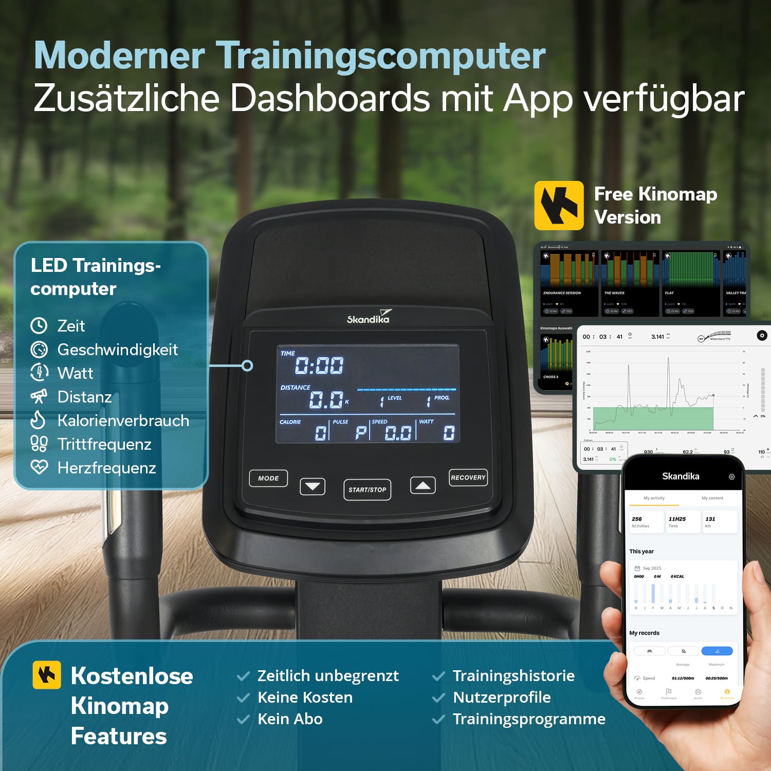 Outre le vélo elliptique, la gamme Skandika Treliv comprend également un rameur performant et un ergomètre élégant.