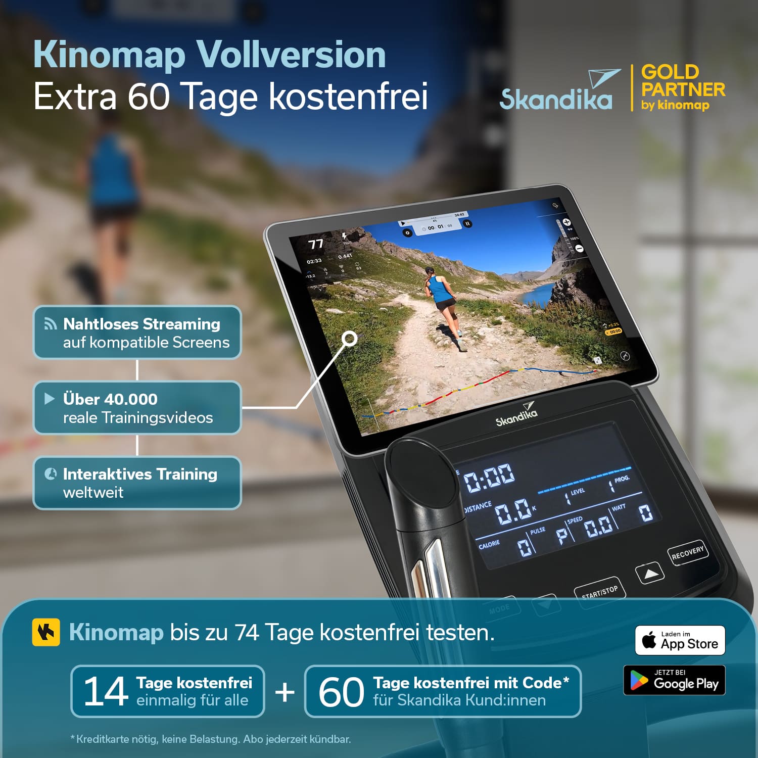 - Les clients Skandika peuvent utiliser Kinomap gratuitement pendant 60 jours pour profiter davantage de l'entraînement virtuel.