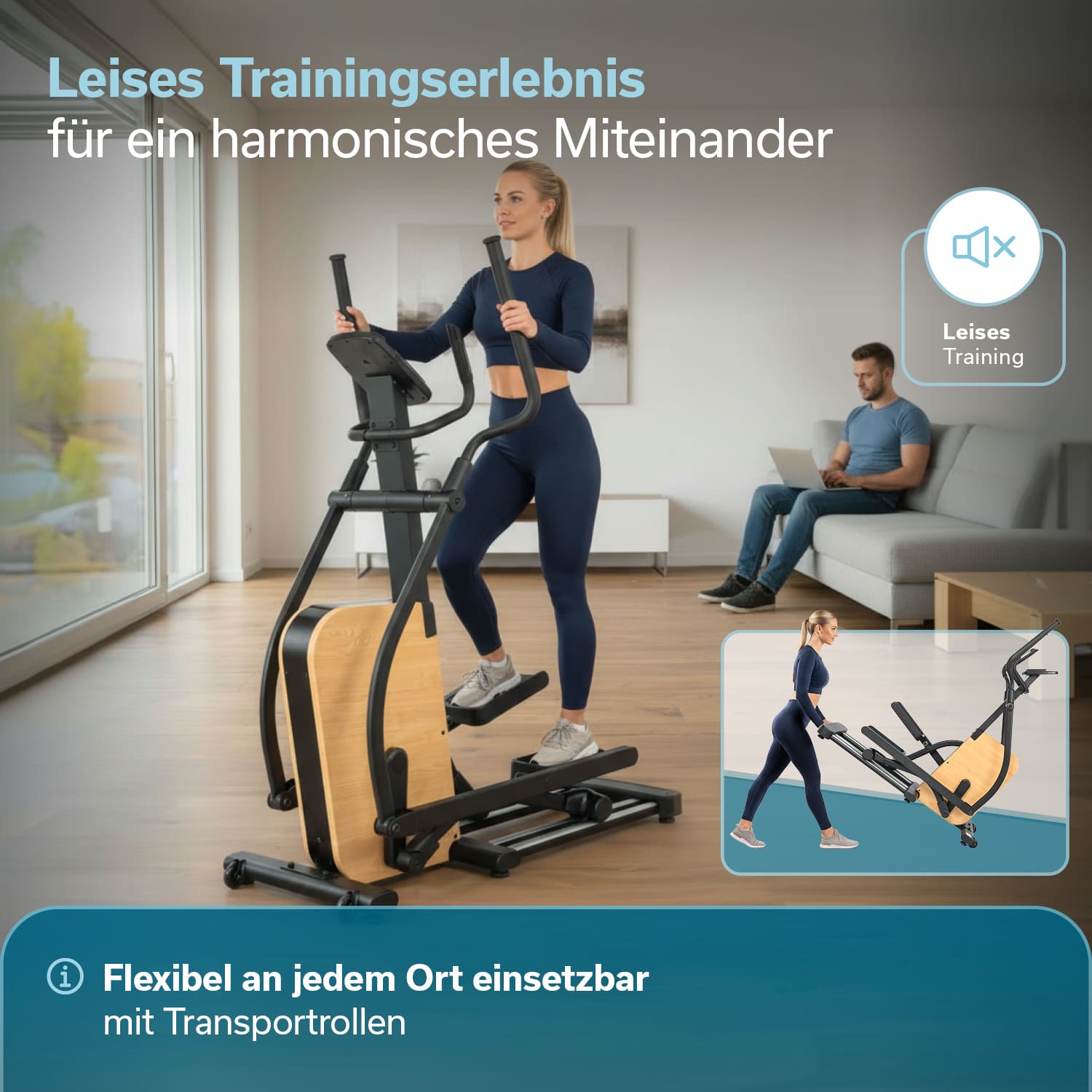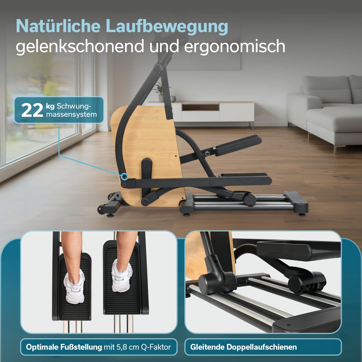 - Vélo elliptique puissant en fer robuste avec des éléments élégants en bois véritable