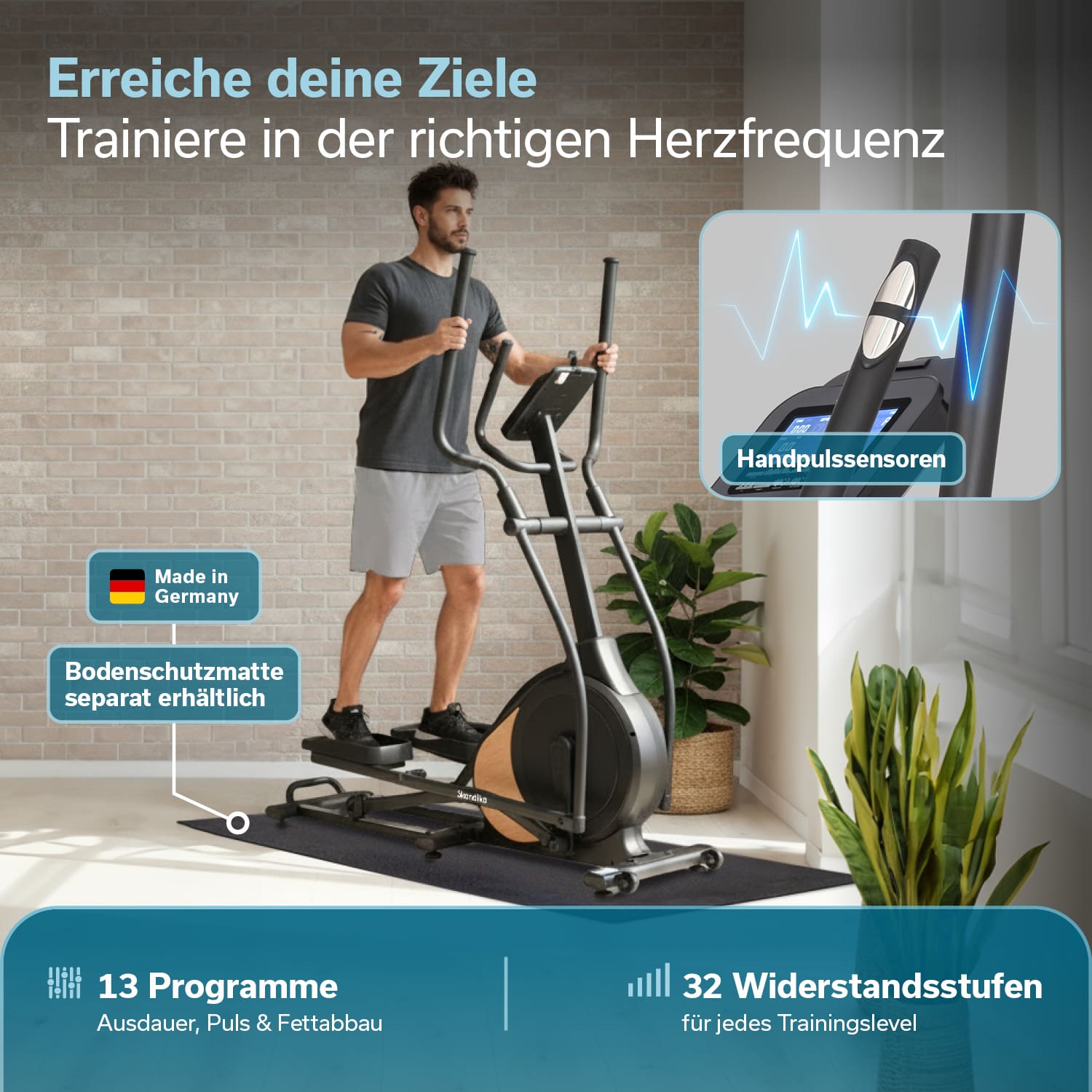 Avec une longueur de foulée de 48 cm, une taille de pédale de 38 × 19 cm et une hauteur maximale de pédale de 44 cm, le vélo elliptique offre un confort optimal pour différentes tailles jusqu'à 200 cm.